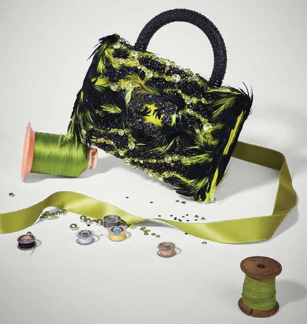 work, metal applications, crystals, semi-precious stones and hand-painted surfaces. It took 70 hours to craft the Portrait du Jaguar, for which a leopard motif is hand-painted on a satin base before embroidery is added in stages. The same number of hours were devoted to constructing Paradis Noir – feathers studded with varying sizes of beads and crystals – a bag that pays homage to the shoe of the same name that Vivier designed in 1987. While Roger Vivier will forever be known for his directional shoes, he also dabbled in designing accessories. It’s a baton Gherardo Felloni has picked up and run with to thrilling effect. “For many shoe designers, working for Roger Vivier is the dream – he’s the master,” said Felloni. “There’s a before Roger Vivier and an after. He changed everything.”