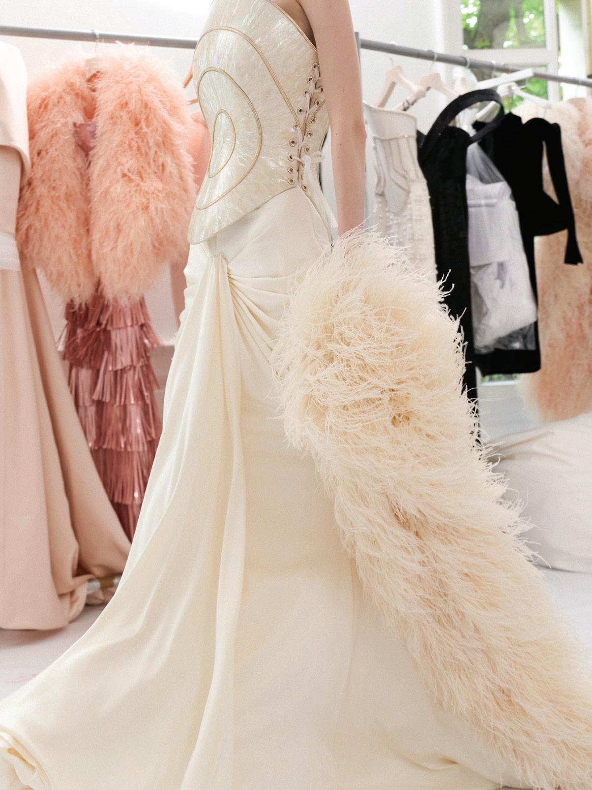 Having touched on the idea of technology, I ask about the role AI may one day play in couture’s creative process. “I think the concept and development of AI is interesting and has the potential of pushing boundaries creatively but, as with anything, I think finding the right balance will be of the utmost importance. It will be about embracing the power and opportunities that such innovation brings and using it to our advantage, but in a way that still protects the talent and craftsmanship within the fashion industry.