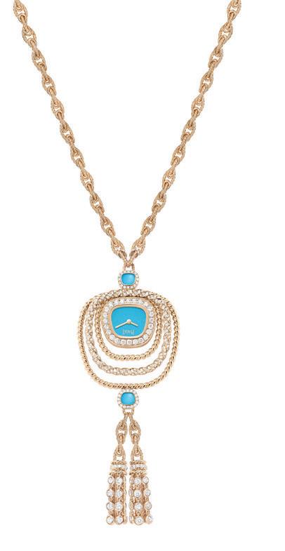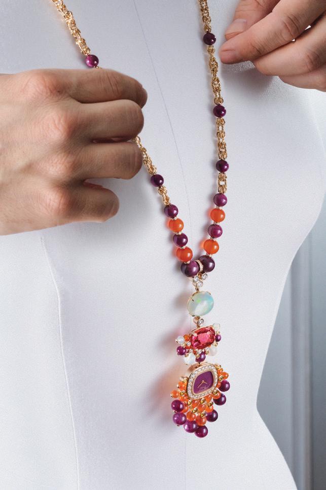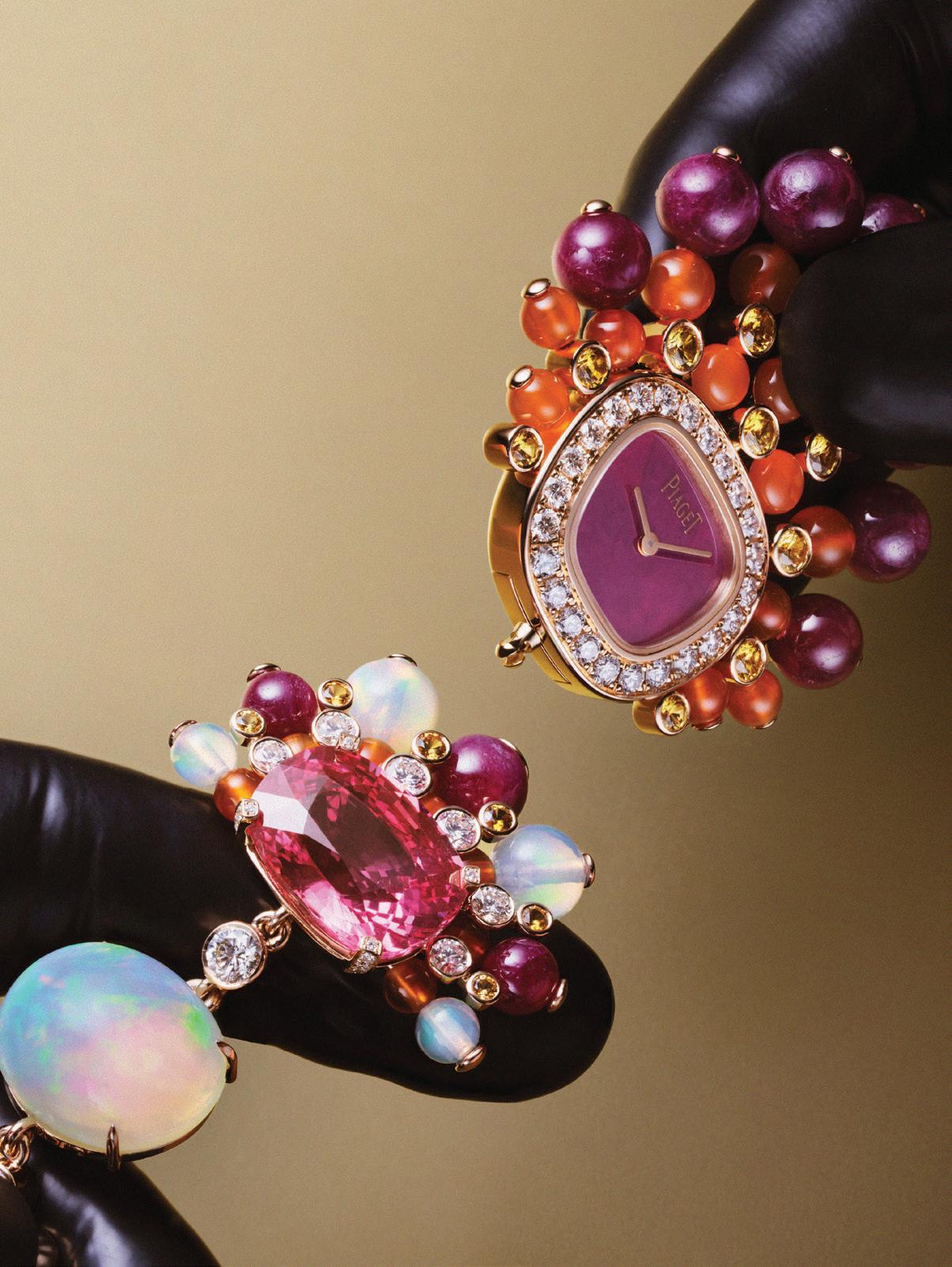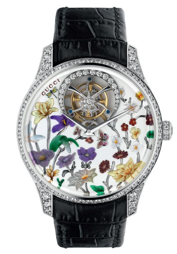 emblematic Flora print that takes centre stage here, the dial decorated in handpainted miniature flowers and handengraved inlays. Further featuring white gold, diamonds, and white grand feu enamelling, it is powered by a diamondset tourbillon.