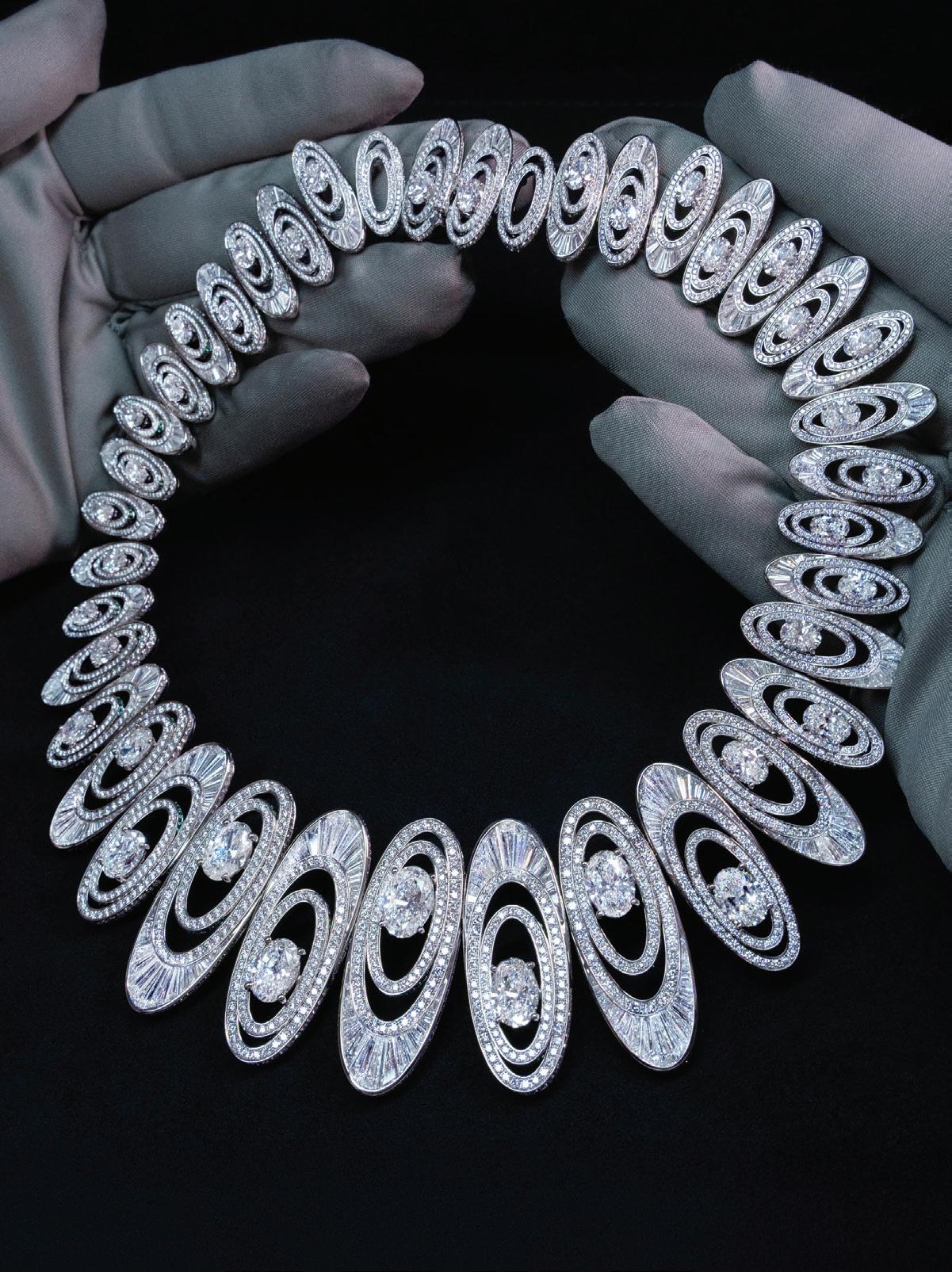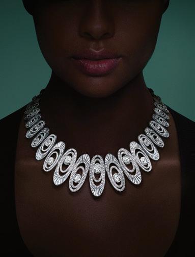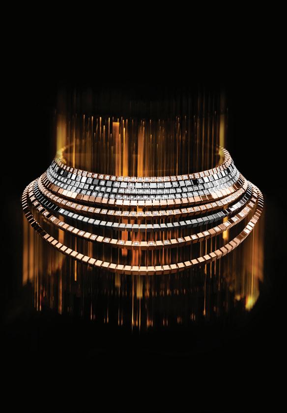 expression. I wanted the pieces to feel wearable yet unexpected, like modern art for the body.” The highlight is this oneof-a-kind modular necklace, composed of nine rows of articulated cubes in two sizes crafted from a mix of ethical rose and white gold and diamonds.