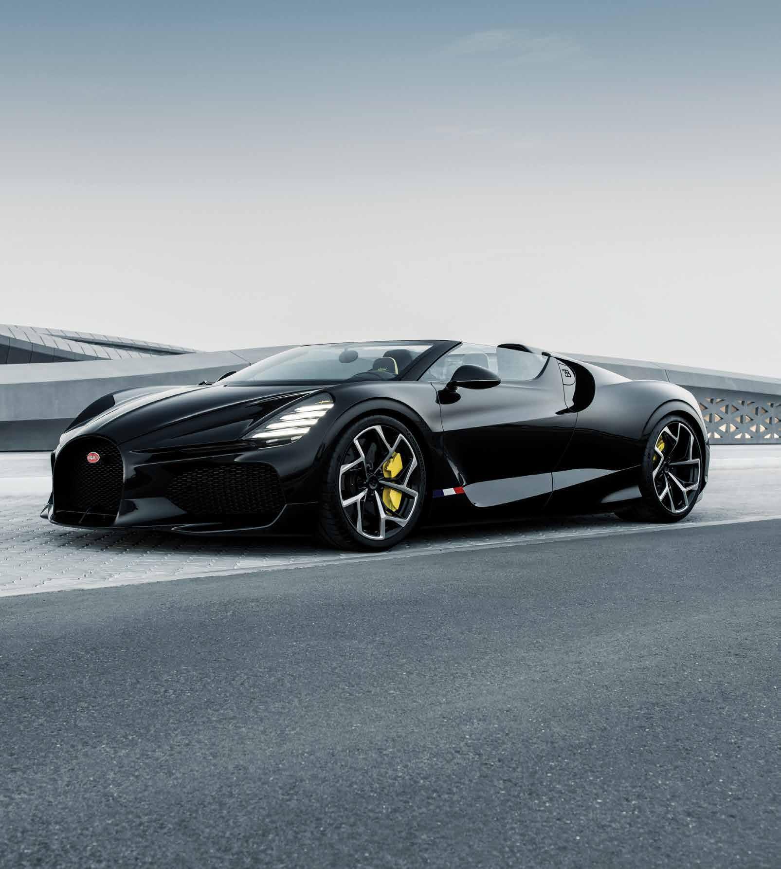 Perhaps Bugatti’s best-known vehicle is La Voiture Noire. It also happens to be the world’s most expensive car. A tribute to the brand’s iconic Atlantic model of the 1930s, the $18 million hypercar is painted entirely in high-gloss black, boasts six exhaust pipes and could have driven straight off the set of a Batman movie. “I’m shaping what will often be a once-ina-lifetime opportunity for our customers,’ says Straub.
