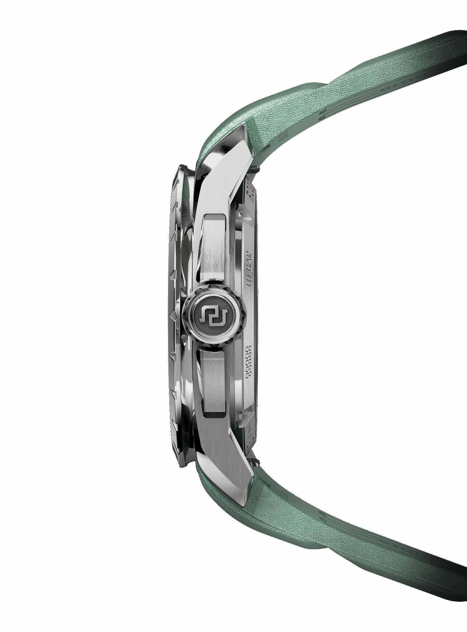 the decision to skeletonise the entire calibre, a feat of watchmaking that pushes open-worked materials to the limits of their functional resistance. It is available as a limited edition of 50 pieces, and comes with a rubber strap tailor-made for this watch.