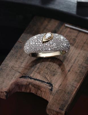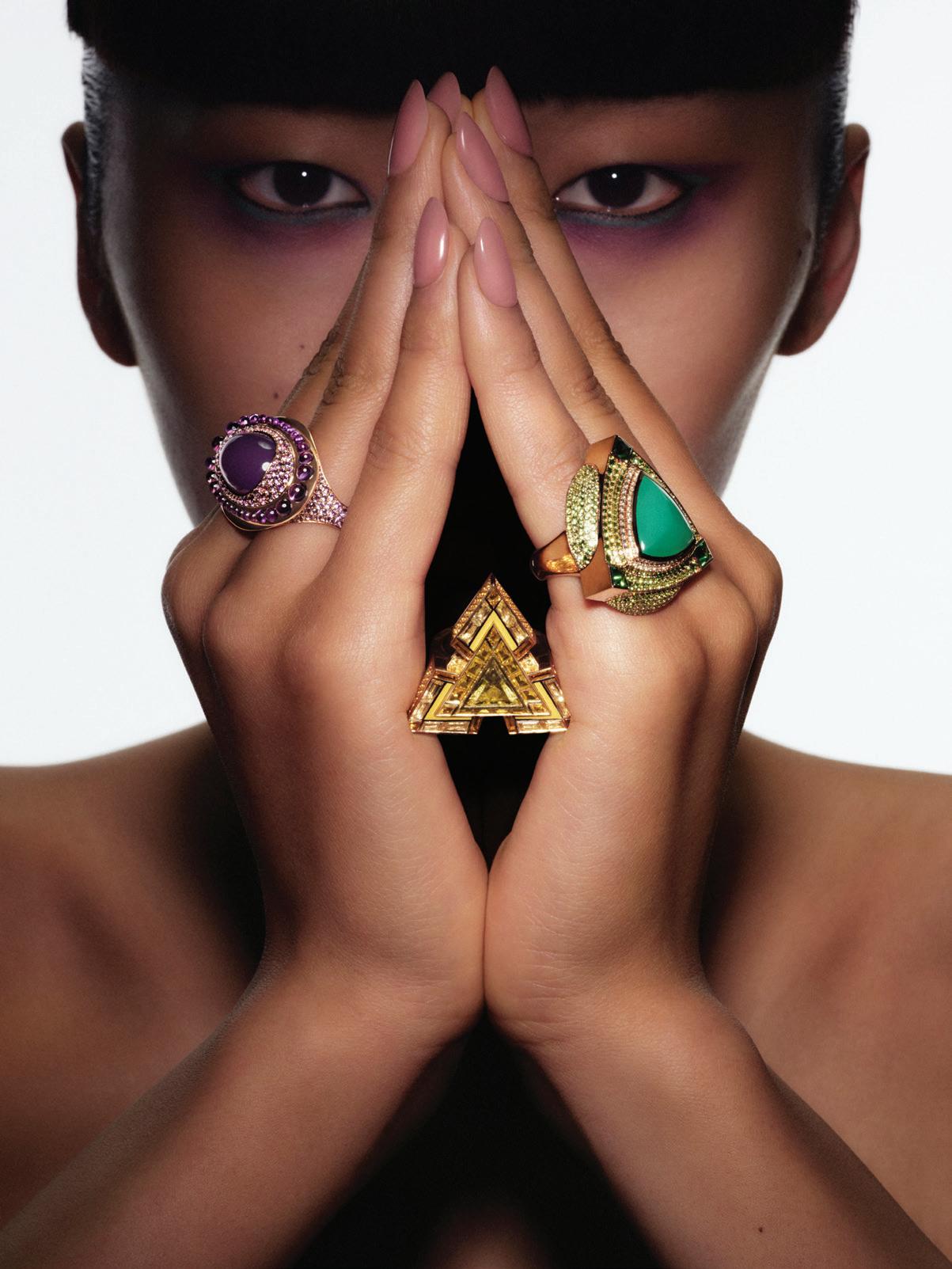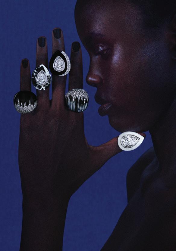 ode to memories of water, in particular those that flow through Iceland. The result is a collection of 26 pieces that evoke elements like the flow of a waterfall, the purity of a glacier, and the foam of the ocean as it breaks on the beach, as captured in these rings.