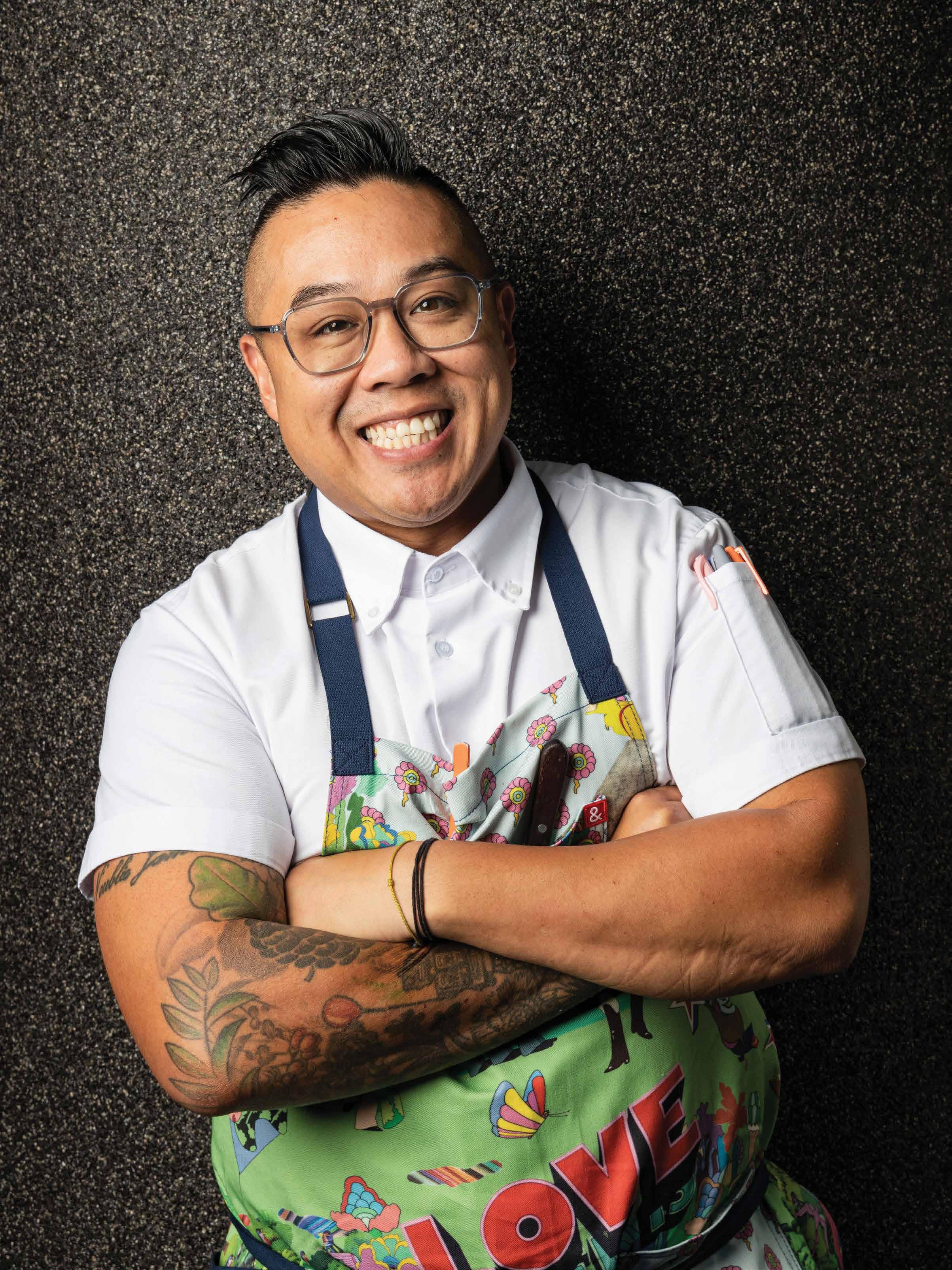 Kelvin Cheung may well be one of the hottest chefs in Dubai right now, his restaurant, Jun’s, the recipient of considerable acclaim from the likes of Michelin and The World’s 50 Best, but you venture he would also sweep the board were there an awards ceremony for the city’s greatest raconteurs. Stories. He’s full of them. Which is probably no surprise, given that his career thus far has taken him across the globe, from Canada to the United States, Belgium to India, and, since 2021, the UAE. Yet had Cheung not met his wife, Andrea, during those travels, it seems likely that his stories (some of which are jaw-droppingly candid) would have remained untold. “She literally shoved me out of my comfort zone right into the spotlight. Her relationships were much stronger than mine in the media world and she helped build the side of the chef gig that I find the hardest — publicity. After years of practice, I am much more at ease in front of cameras, in interviews, and speaking to any kind of audience.”