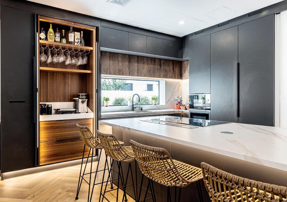 The smartest kitchens of 2026 won’t announce their technology, instead choosing to keep it out of sight. Functionality is becoming beautifully discreet, driven by a wave of subtle innovations that prioritise ease and efficiency over inyour-face display. AI-enabled appliances that learn cooking routines, app-controlled lighting that adapts throughout the day, and systems that optimise energy usage all operate quietly in the background. While multifunction taps such as Quooker have long offered convenience with boiling, filtered and sparkling water on demand, the new generation of kitchen tech goes much further. Voice-responsive ovens and fridges streamline tasks, while refrigerators capable of monitoring and managing inventory are becoming standard. The result is a visually tranquil kitchen that performs at an impressively advanced (unseen) level.