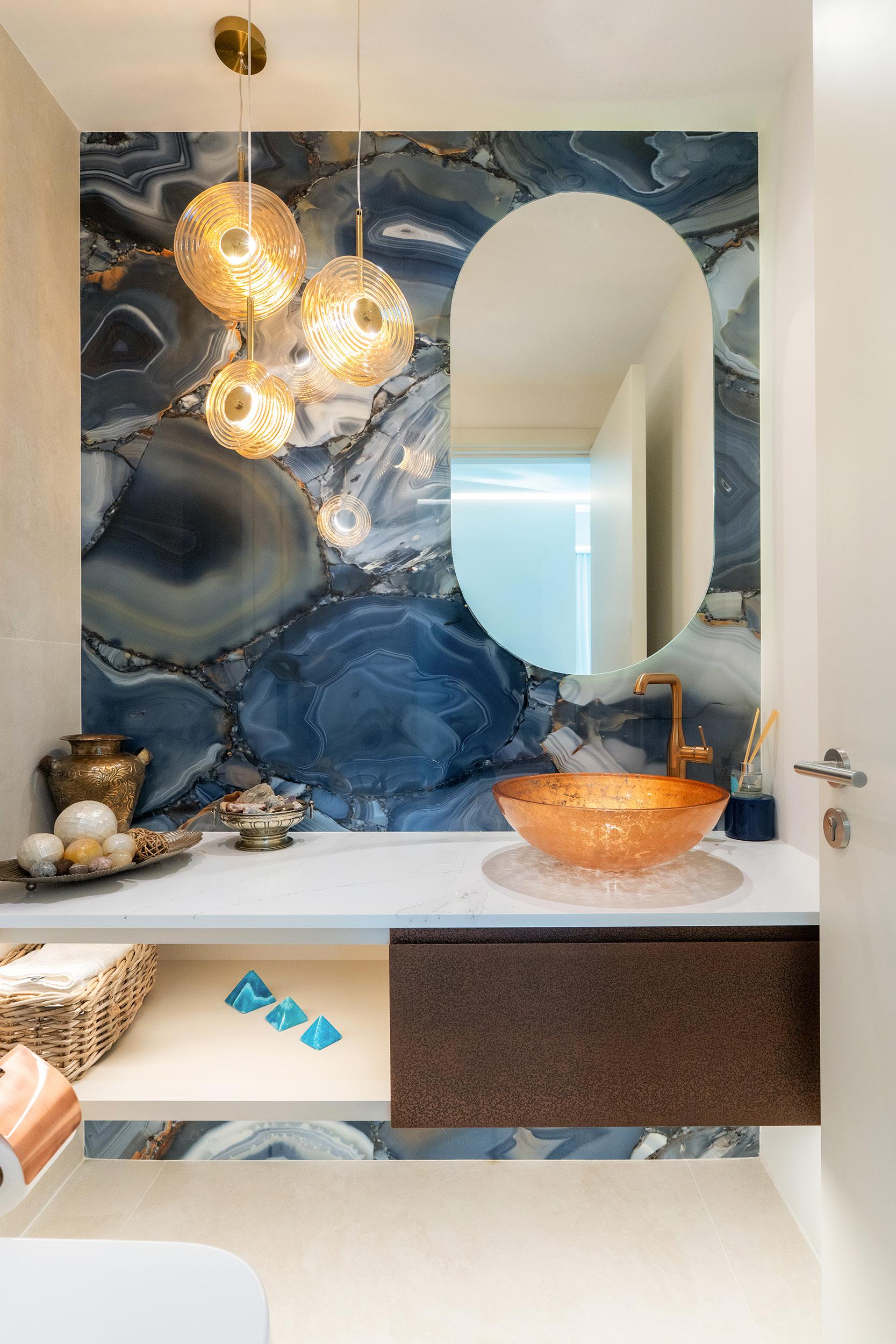 seeded glass that cast atmospheric shadows. Check out the attic for old family treasures or head to any of Dubai’s vintage emporia for unique alternatives to standard off-the-shelf fittings. The trick is careful balancing within contemporary settings: antique brass sconces paired with ultra-modern taps, for example.