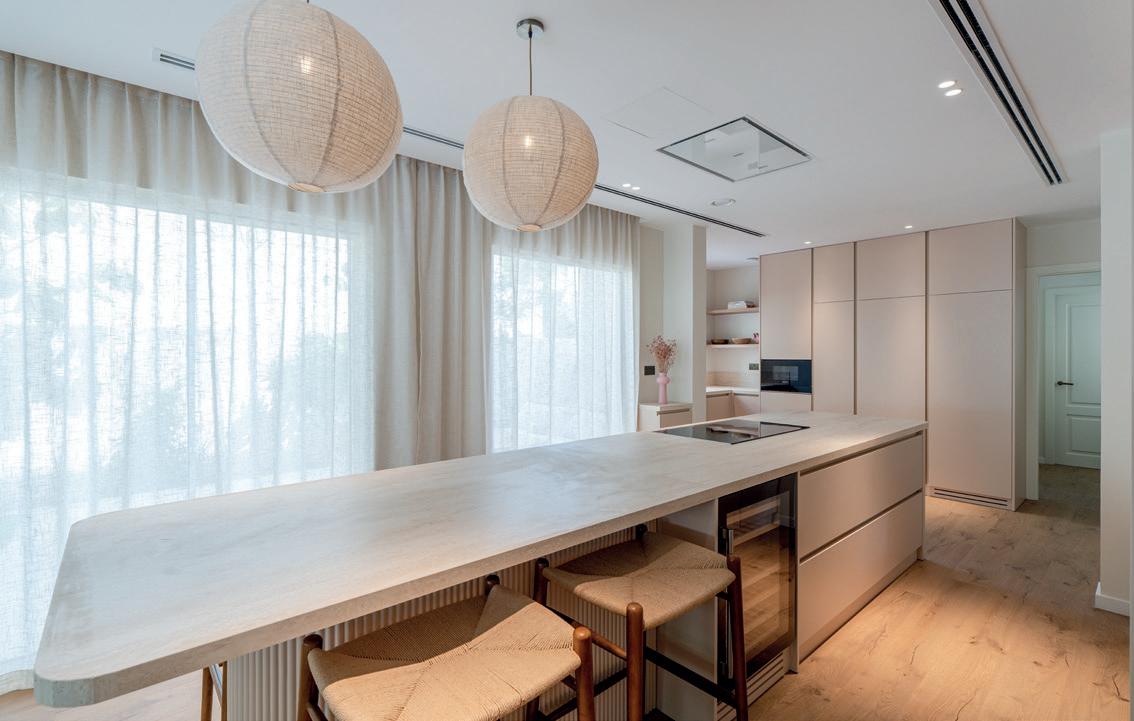 Angular geometry is giving way to a softer sculptural style, with curves shaping a new wave of kitchen design. Kitchen islands, traditionally defined by straight lines, are being reimagined as rounded, crescent or gently tapered silhouettes that feel more social and fluid. These new shapes not only elevate the aesthetic but also create organic gathering points that make the kitchen a more inviting communal zone. The absence of sharp corners also supports a safer workplace – crucial for a family home – and invites smoother interaction between cooking, dining and chillout areas. Cabinetry is also embracing this softened language. Rounded corner units, curved door fronts and flowing joinery bring a sense of calm to the space to create a cohesive, harmonious cooking environment.