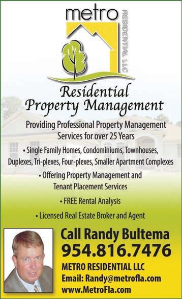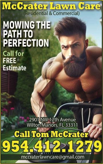 ‘RTS ELECTRIC’ 24-HOUR SERVICE Quality work at a reasonable price. We also service & install any size generator. Licensed & Insured (98-CME-1807-X). 954-257-9509. ADVERTISE IN CLASSIFIEDS
