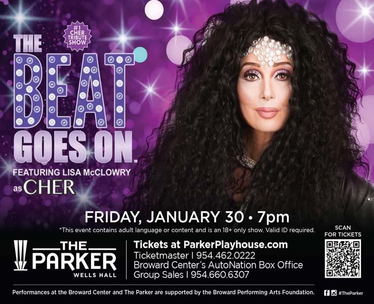 The Parker presents Lisa McClowry, award-winning singer, actress, and producer, who was recently honored as Tribute Artist of the Year at the Grand Ole Opry by the Josie Music Awards for her portrayal of Cher in The Beat Goes On at 7pm. This Broadway-style tribute show captures six decades of Cher’s legendary career with stunning accuracy, featuring live music, dynamic dialogue, audience participation, and eight dazzling costume changes. With over 30 years in the entertainment industry, Lisa’s transformation into Cher is nothing short of astounding, delivering an unforgettable experience that’s been called “A Home Run!” by Industry Leaders. For more information or to purchase tickets go to Parkerplayhouse.com