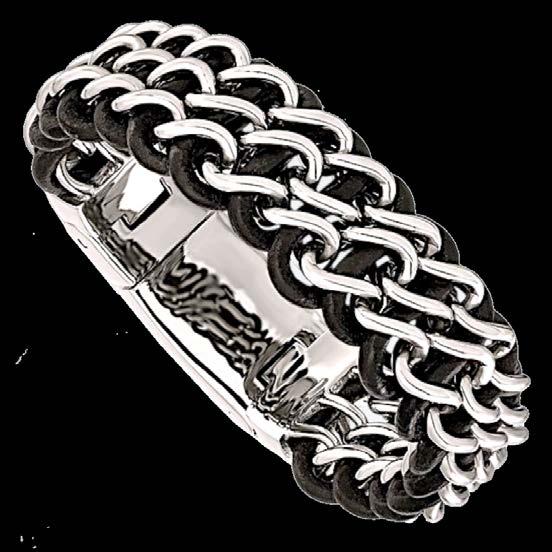 One of his beautiful new pieces is the "ZEUS" design is an amazing gift for your Valentine. Men's Natural Black Leather Weaved Into A Steel Bracelet on sale now for