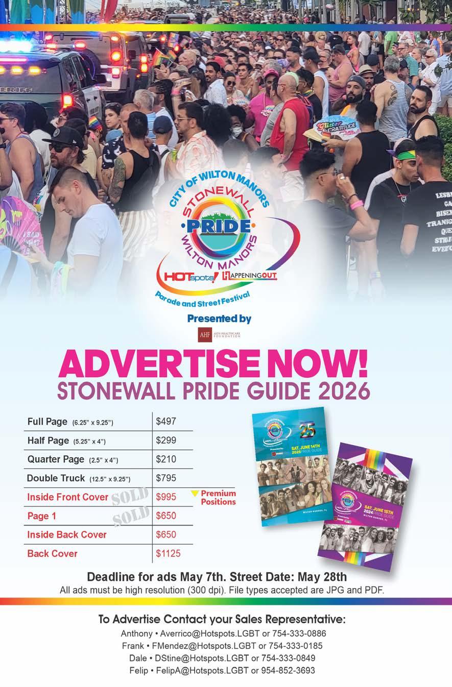 Our unifed partnership of non-proots include Stonewall Pride, HOTspots Magazine, Happening Out Television Network, Wilton Manors Entertainment Group - WMEG, Pride Fête, Art Walk Wilton Manors, Taste of the Island Wilton Manors, Black Pride Cookout, Queer News Tonight, Pride Skate Night, Happening Out Travel, Sculpture Walk Wilton Manors, The Fay What Show, and Pride on the Drive.