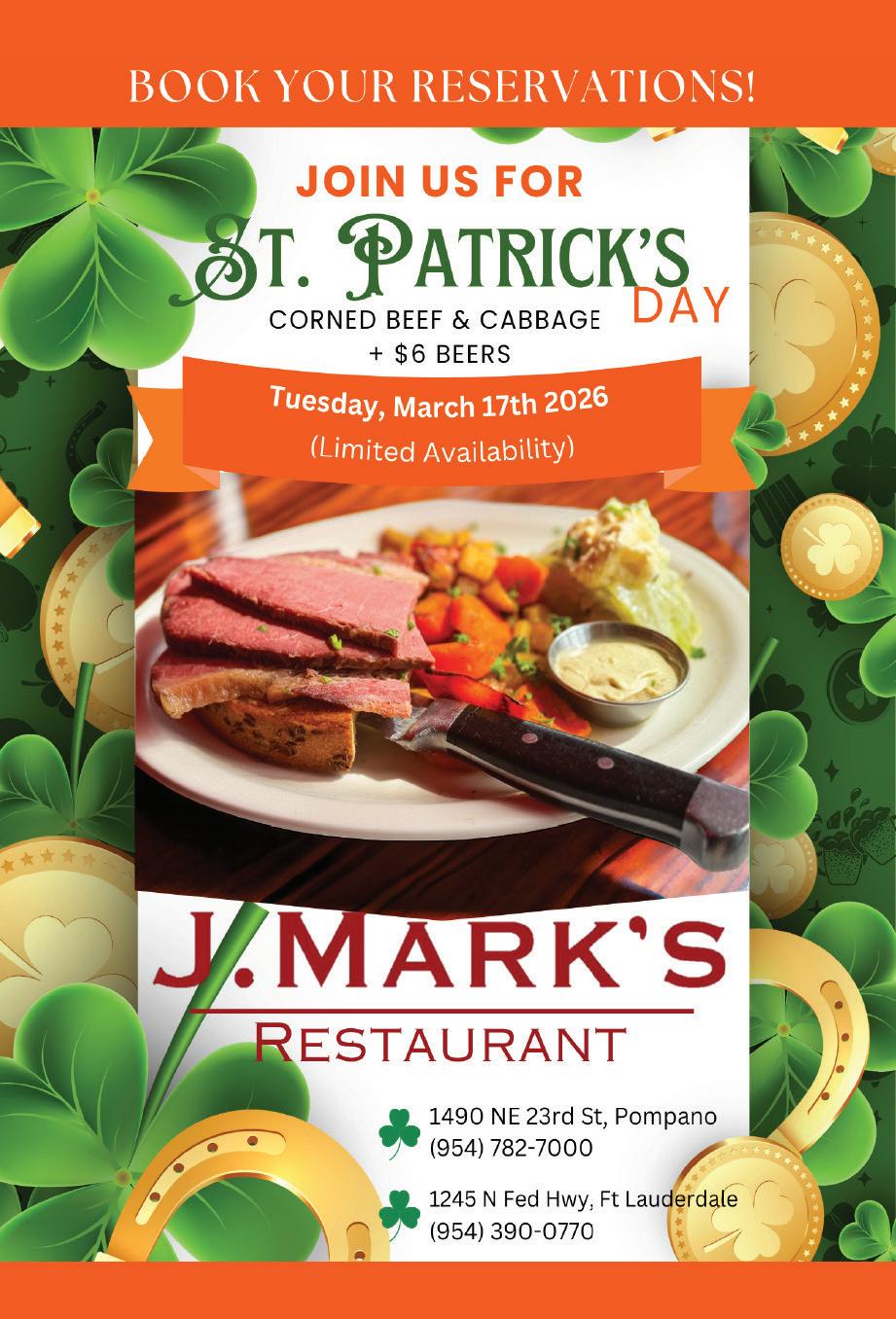 J. Marks Restaurants invited the community to join them in either of their restaurants for St Patrick’s Day where they are featuring Corned Beef and Cabbage along with their full menu. Book your reservations now!