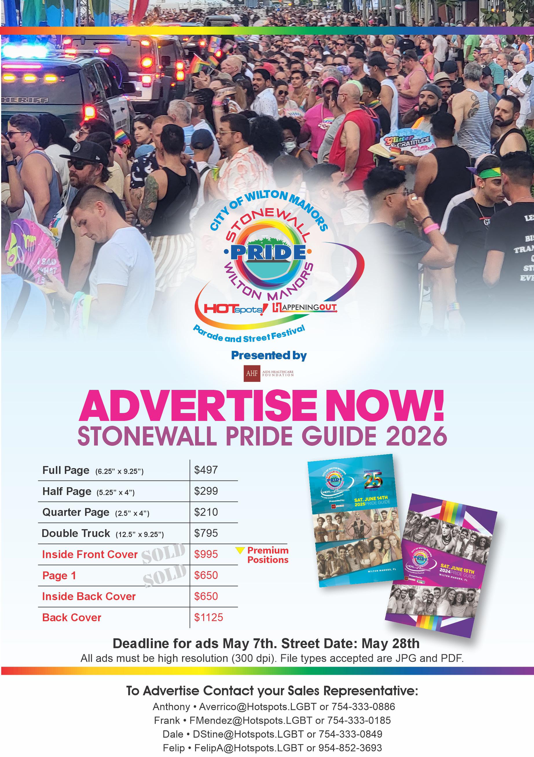 Call (754) 333-0185 or e-mail Classifieds@Hotspots.LGBT or e-mail Ads@Hotspots.LGBT