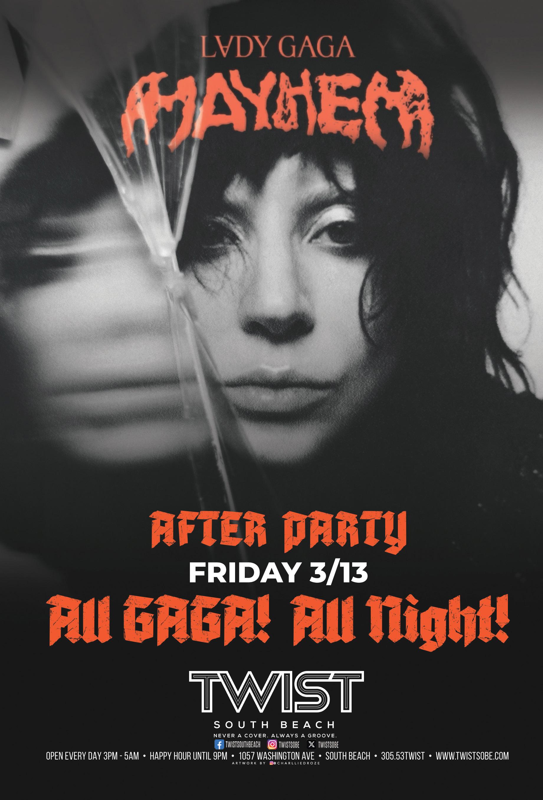 Twist invites everyone to join them for the Lady GaGa Mayhem after Party where they present all GaGa all night.