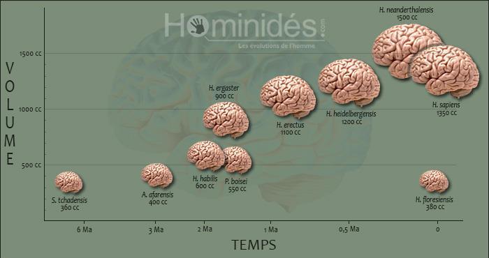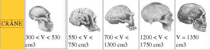 La variation de la taille globale du crâne au fil de l'évolution humaine, particulièrement chez les premiers hominidés, témoigne d'une variété d'adaptations anatomiques liées à la bipédie, ainsi qu'à des changements dans les habitudes de vie et le régime alimentaire.