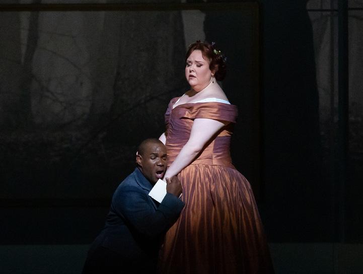 ◆ That same season, Summers makes his HGO debut conducting La traviata. During his decade-spanning career in Houston, he will conduct the opera three times, in productions starring Patricia Racette, Renée Fleming (2003, above), and Albina Shagimuratova. He will also take the podium for Verdi’s Requiem; Don Carlo, in both the Italian and French versions; Rigoletto; A Masked Ball; Simon Boccanegra; Aida; Otello; two Falstaff productions, starring Sir Bryn Terfel and Reginald Smith, Jr.; and Il trovatore, in three productions, starring Sondra Radvanovsky, Tamara Wilson, and in fall 2024, Michael Spyres and Ailyn Pérez.
