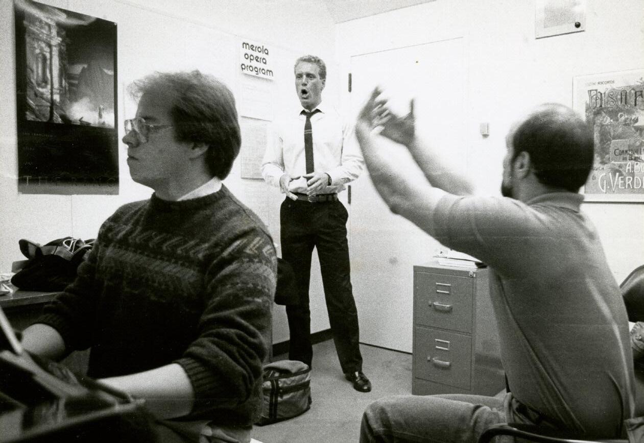 Indiana University's distinguished professor Margaret Harshaw, his mentor and voice teacher, sets the young high school student on the path to becoming a conductor." She says, “You play the piano like an orchestra. You think in terms of singers. You’re an opera conductor.”