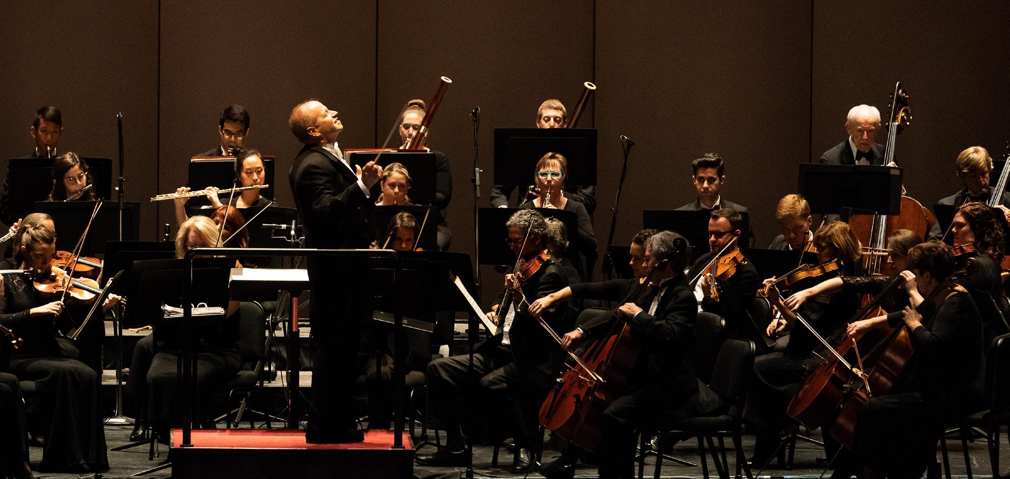 Maestro Summers with the HGO Orchestra at the company's 2018 "Coming Home" gala, which reopened the Wortham after Hurricane Harvey.