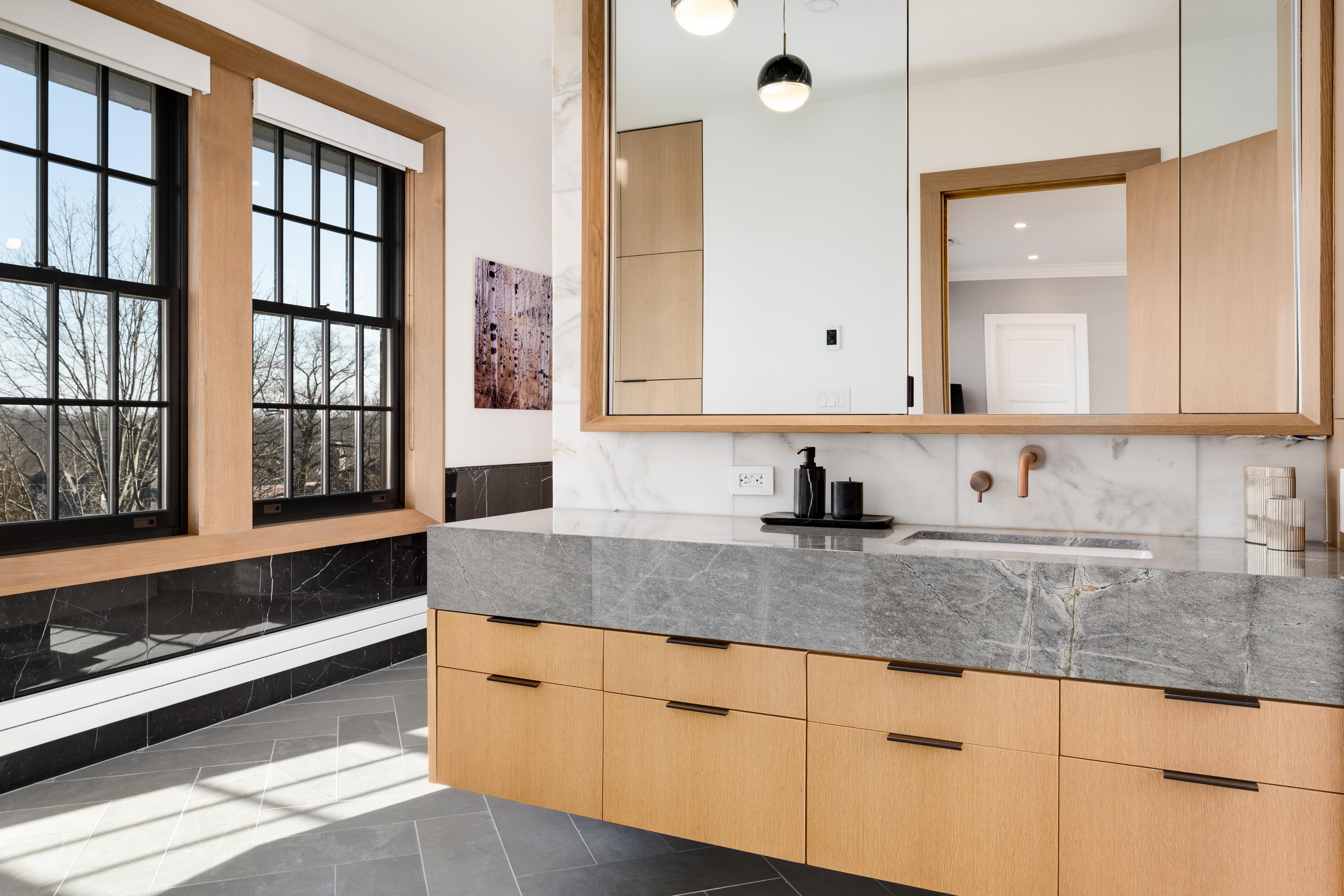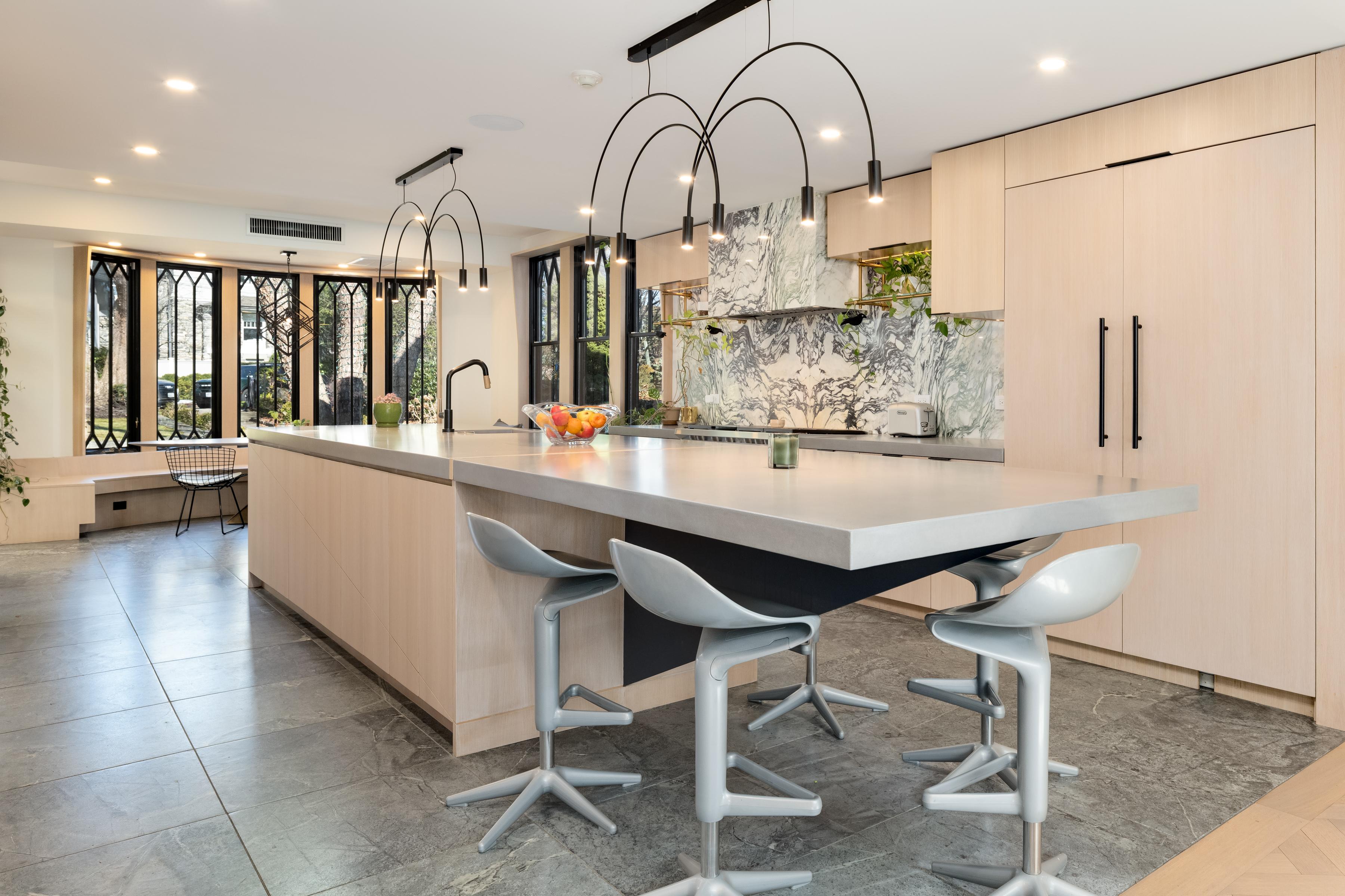 Between 2018 a nd 2020, a co mprehe nsive r enovation rei magined the interio r down to thestuds. The