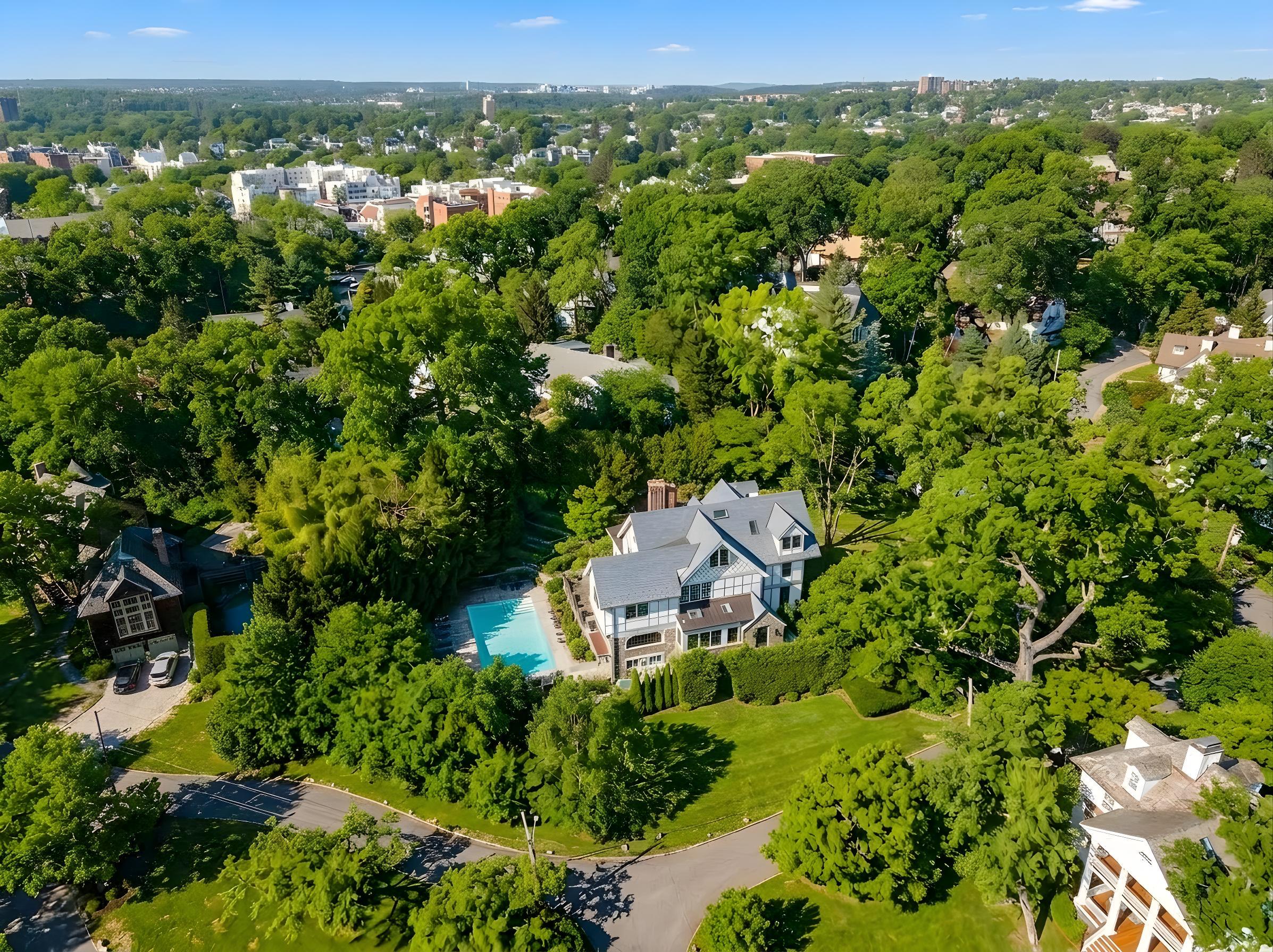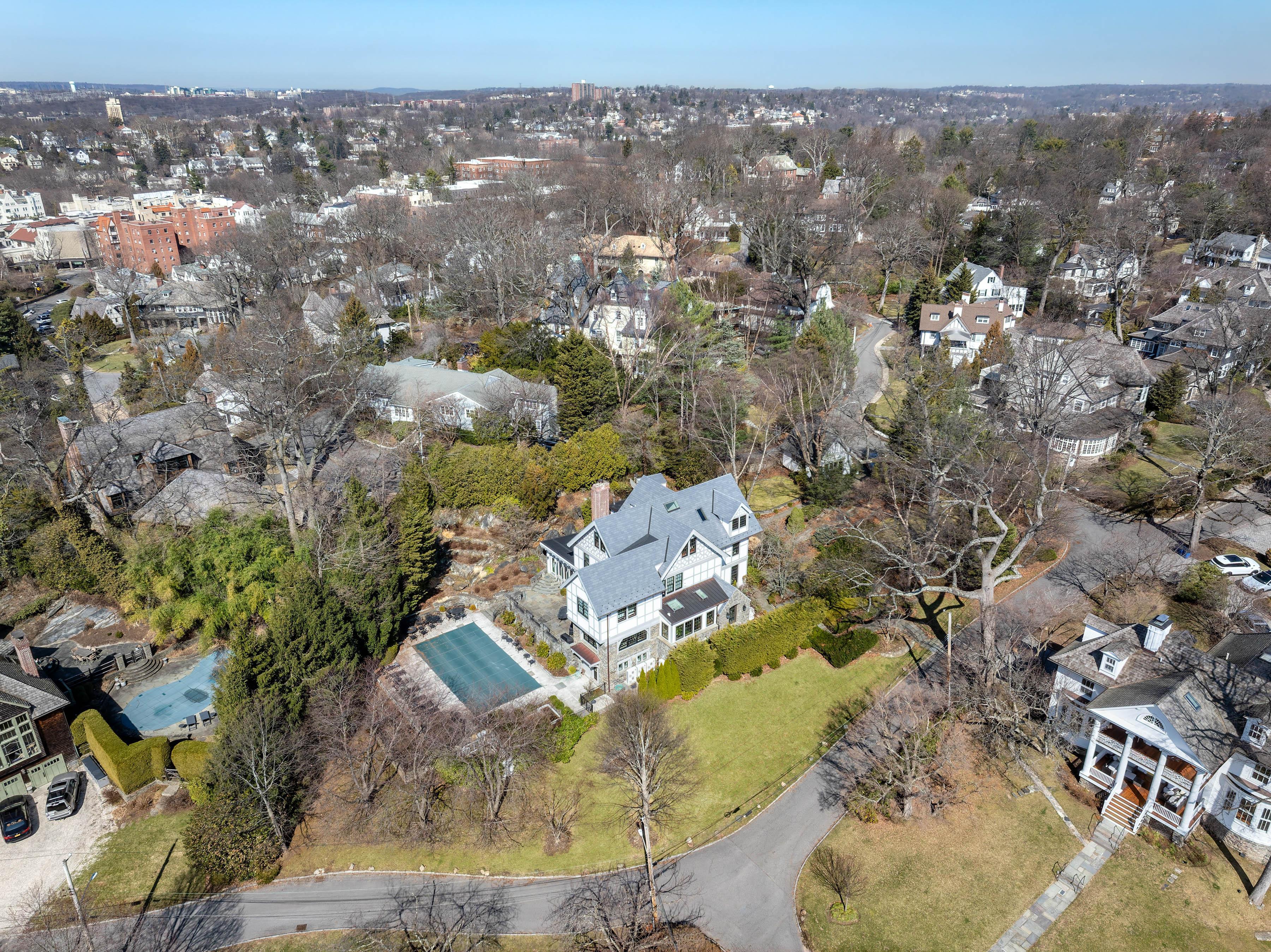 views s pan Wellingto n Circl and Bronxv ille Village, extend ing to the ic onic M anhatta n skyline. Th e