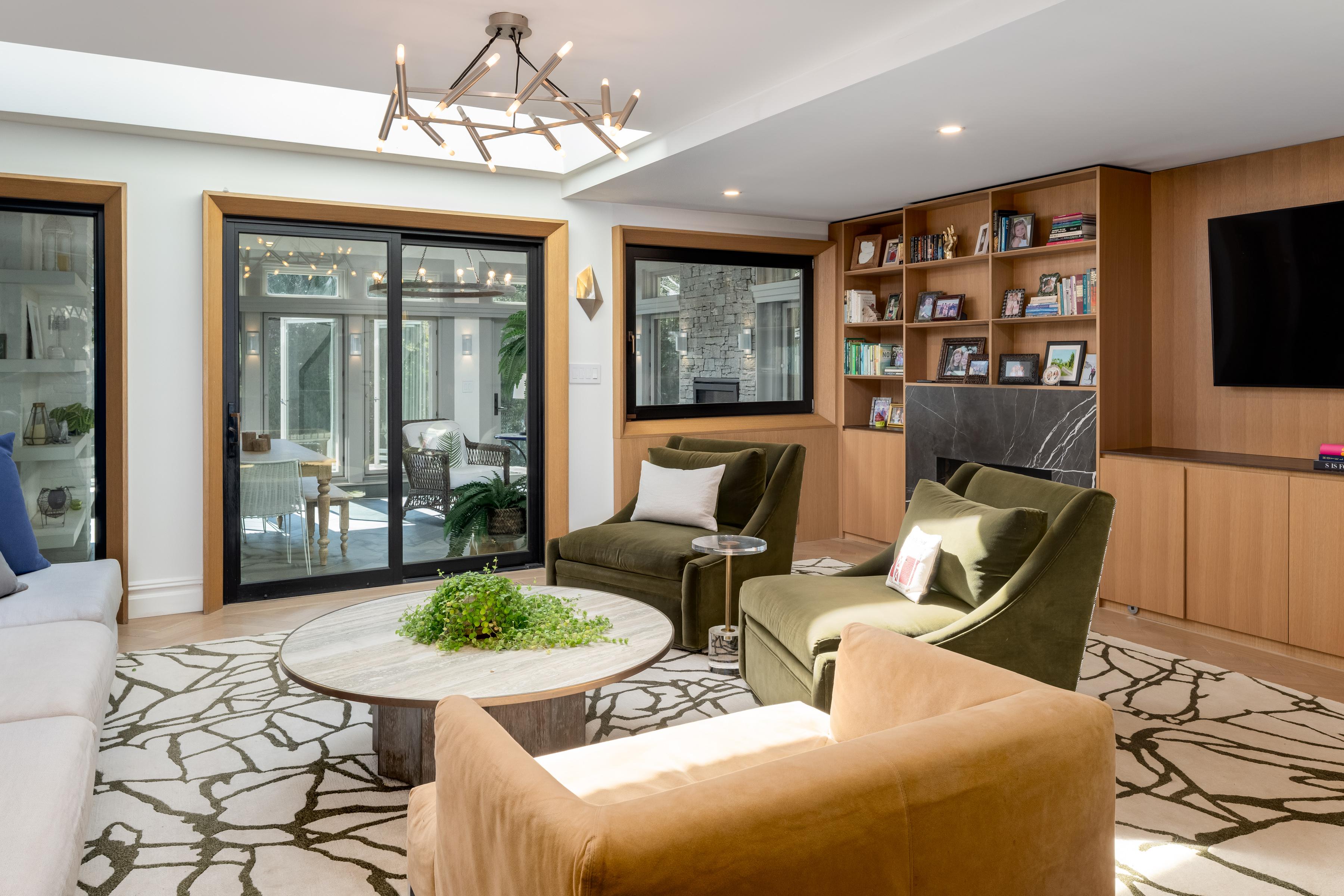 This home features a bright, open floor plan highlighted by a stunning double-high white oak staircase. The design creates a cozy atmosphere with spaces for entertaining and relaxation, making it inviting and filled with natural ligh, ideal for gatherings or quiet moments.