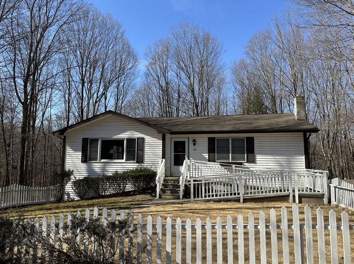 One and two-story (split level style) wood frame residence, 5 beds, 3 baths, kitchen, living area.