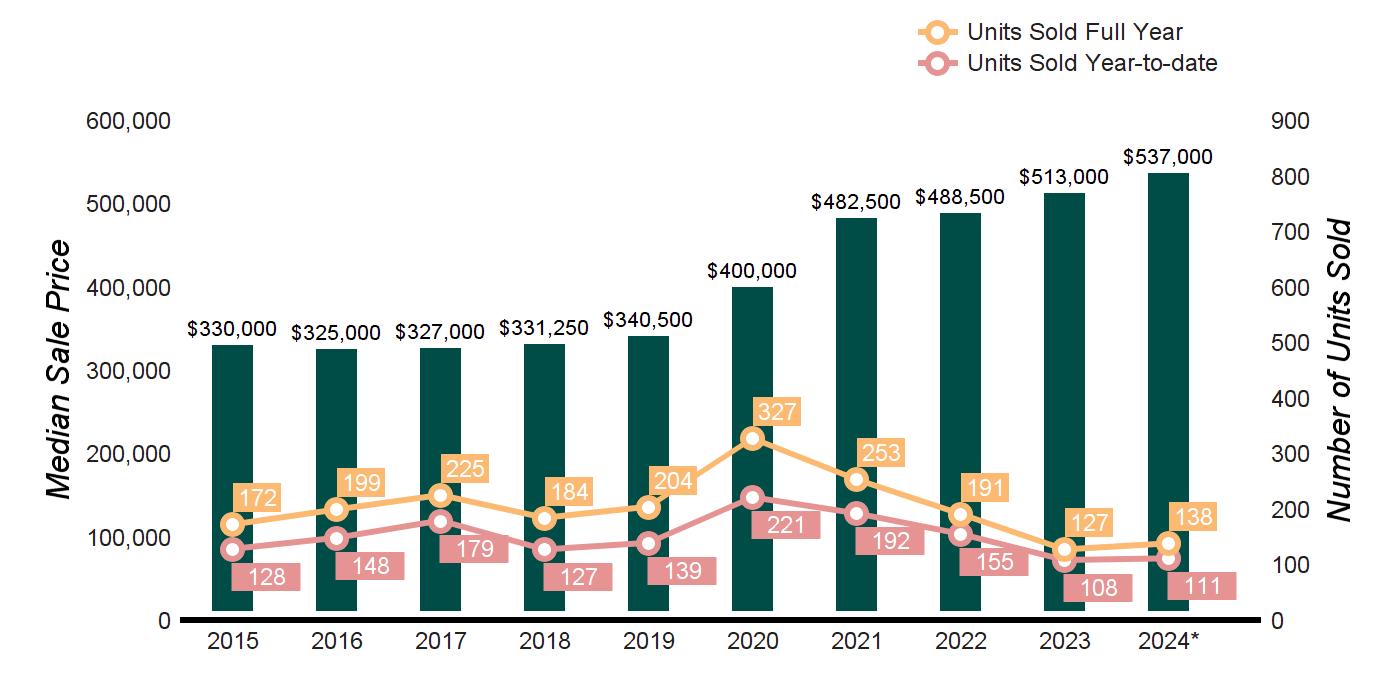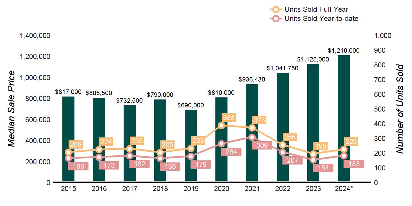 Source : Greenwich MLS, Residential / Single Family Homes * Homes sold for 2024 are annualized based on actual sales year-to-date