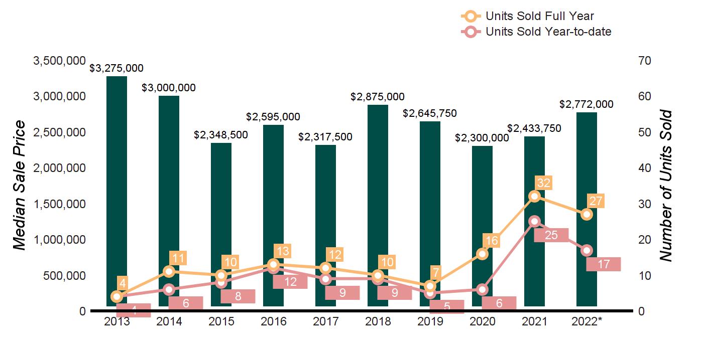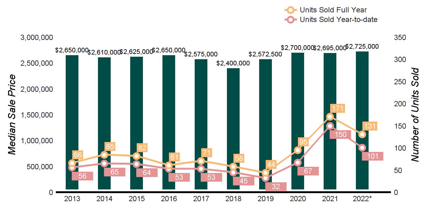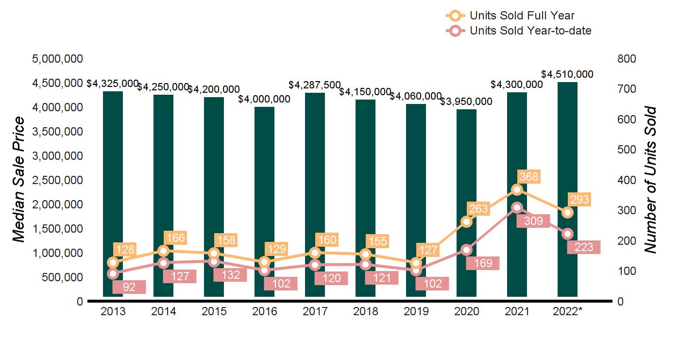 MEDIAN SALE PRICE $4,650,000 $4,237,500 9.7% $4,510,000 $4,275,000 5.5%