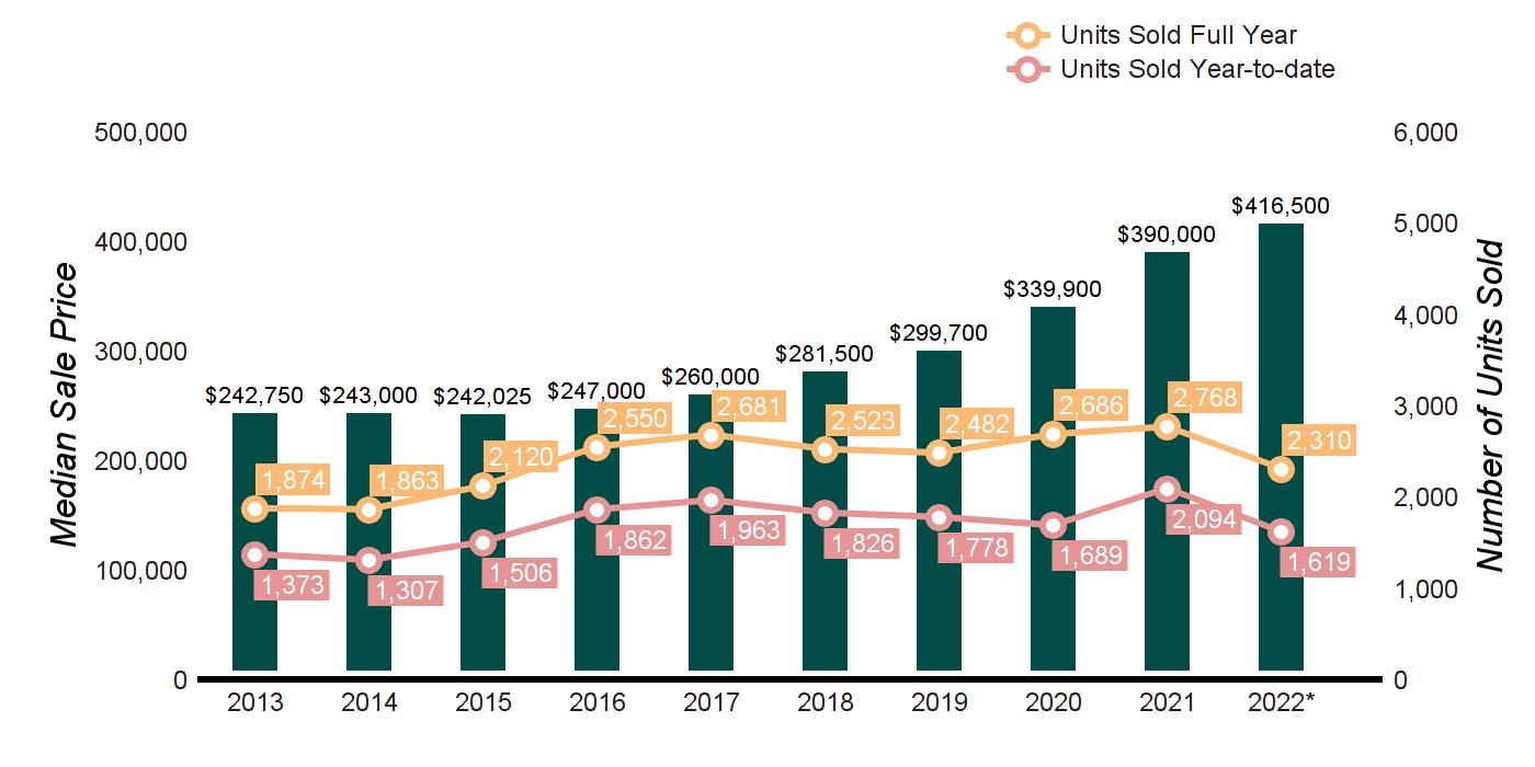 0 0 Not Valid 0 0 Not Valid 0.0% 0.0% MarketTotals 19 25 1 22 44 1 -13.6% -43.2% *Supply Demand Ratio Key 1-4: High Demand 5-6: Balanced 7-9: Low Demand 10+: Very Low Demand TEN-YEAR MARKET HISTORY Average Sale Price $229,906 $254,240 $279,172 $246,529 $241,929 $276,336 $253,968 $262,118 $296,474 $318,808 Average Sale Price Average Price/SqFt $158 $163 $176 $166 $168 $194 $187 $203 $215 $243 Average Price/SqFt Days On Market 249 137 117 115 83 76 64 82 46 42 Days On Market %Sale Price to List Price 95.8 95.8 97.0 97.4 96.9 98.4 98.1 97.9 99.7 100.8 %Sale Price to List Price Source: Onekey MLS, Condominiums * Homes sold for 2022 are annualized based on actual sales year-to-date.