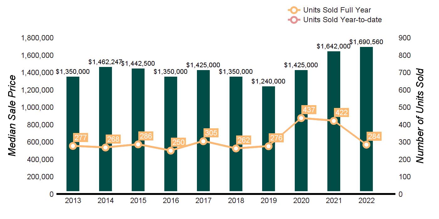 MEDIAN SALE PRICE $1,750,000 $1,565,000 11.8% $2,002,000 $1,599,500 25.2%