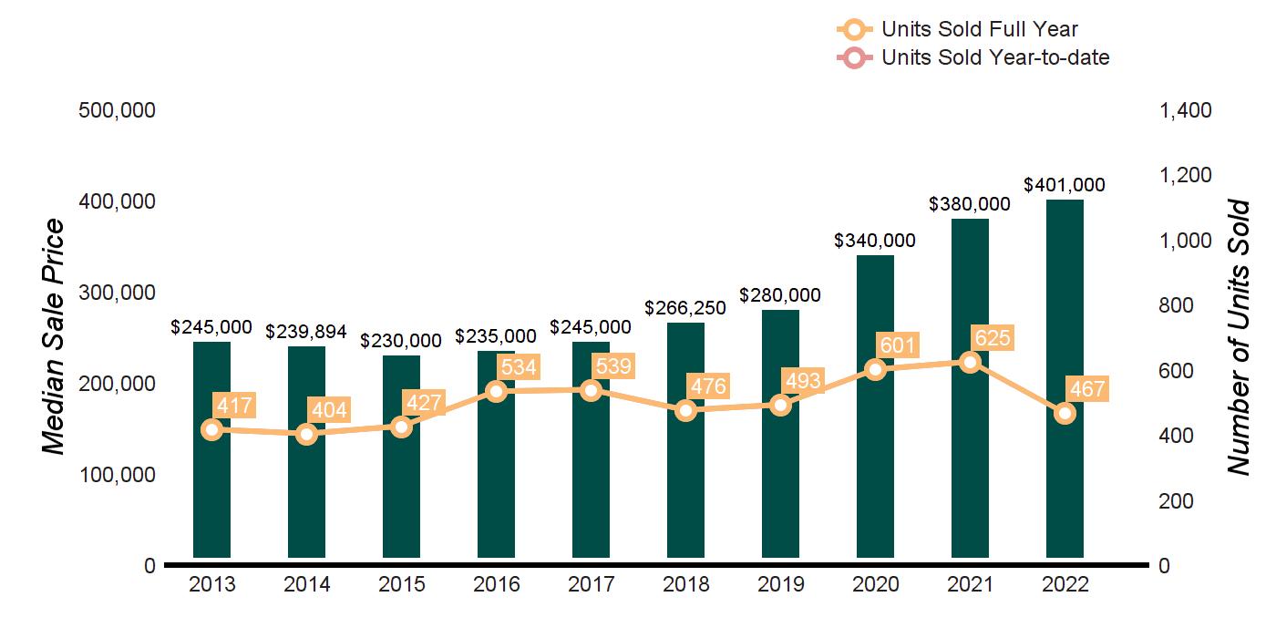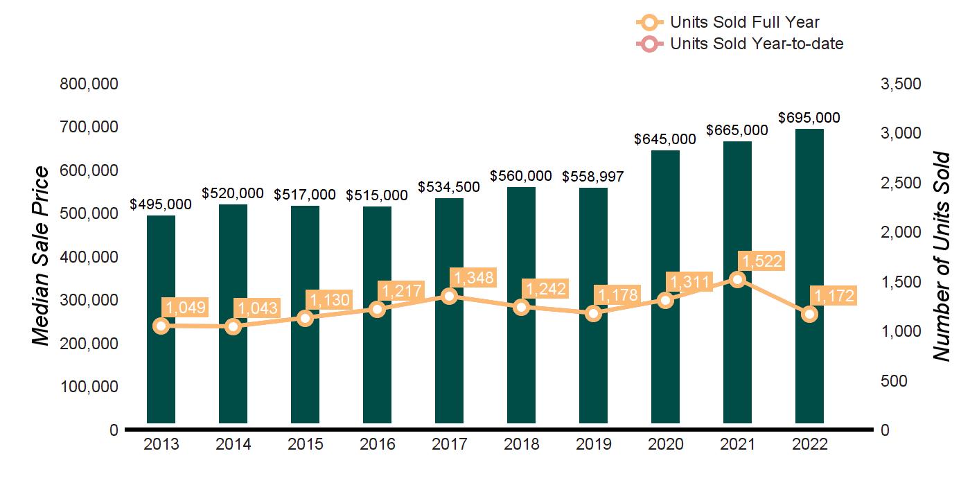 Mid-Hudson Multiple Listing Service, Residential-detached homes. * Homes sold for 2022 are annualized based on actual sales year-to-date.