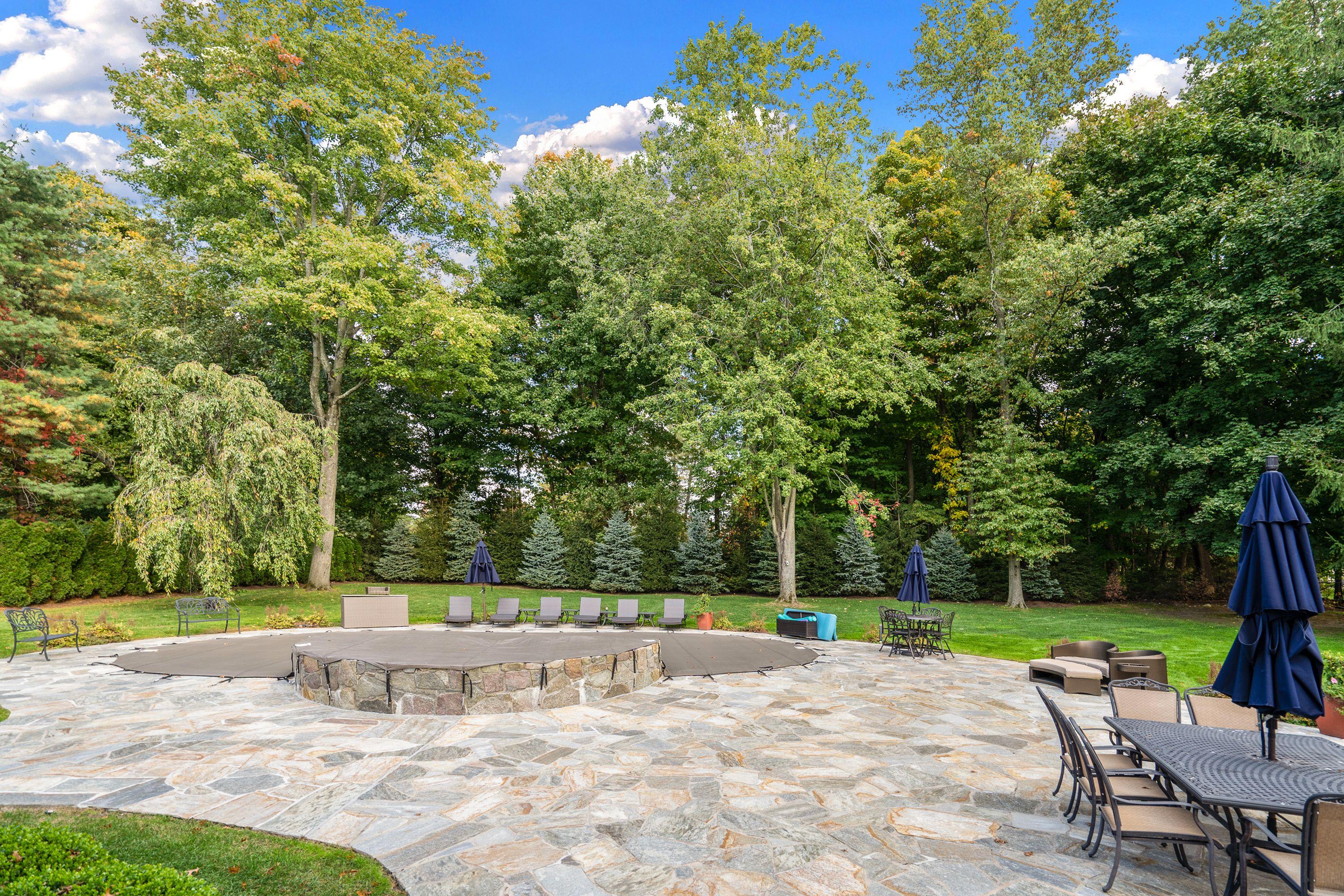 Fabulous Lincoln Rise Contemporary Colonial on .86 private acres in 24/7 gated community with a salt water in-ground heated pool/spa. This completely renovated gem boasts a grand marble foyer, inviting living room with fireplace, formal dining room, new state-of-the-art Chef’s kitchen with high end appliances and separate dining area looking pool and patio, spacious family room with fireplace, and luxurious first floor primary bedroom suite with walk-in closets, fireplace, private patio and spa bath. Finished, walk-out lower level with home theater, wet bar, full bath, playroom and 2nd laundry room (additional sq. ft.).