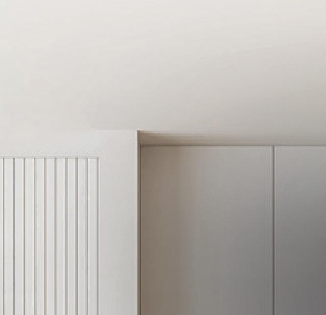 used here evokes a sleeker and simpler look, rather than shiplap’s typical farmhouse vibe.
