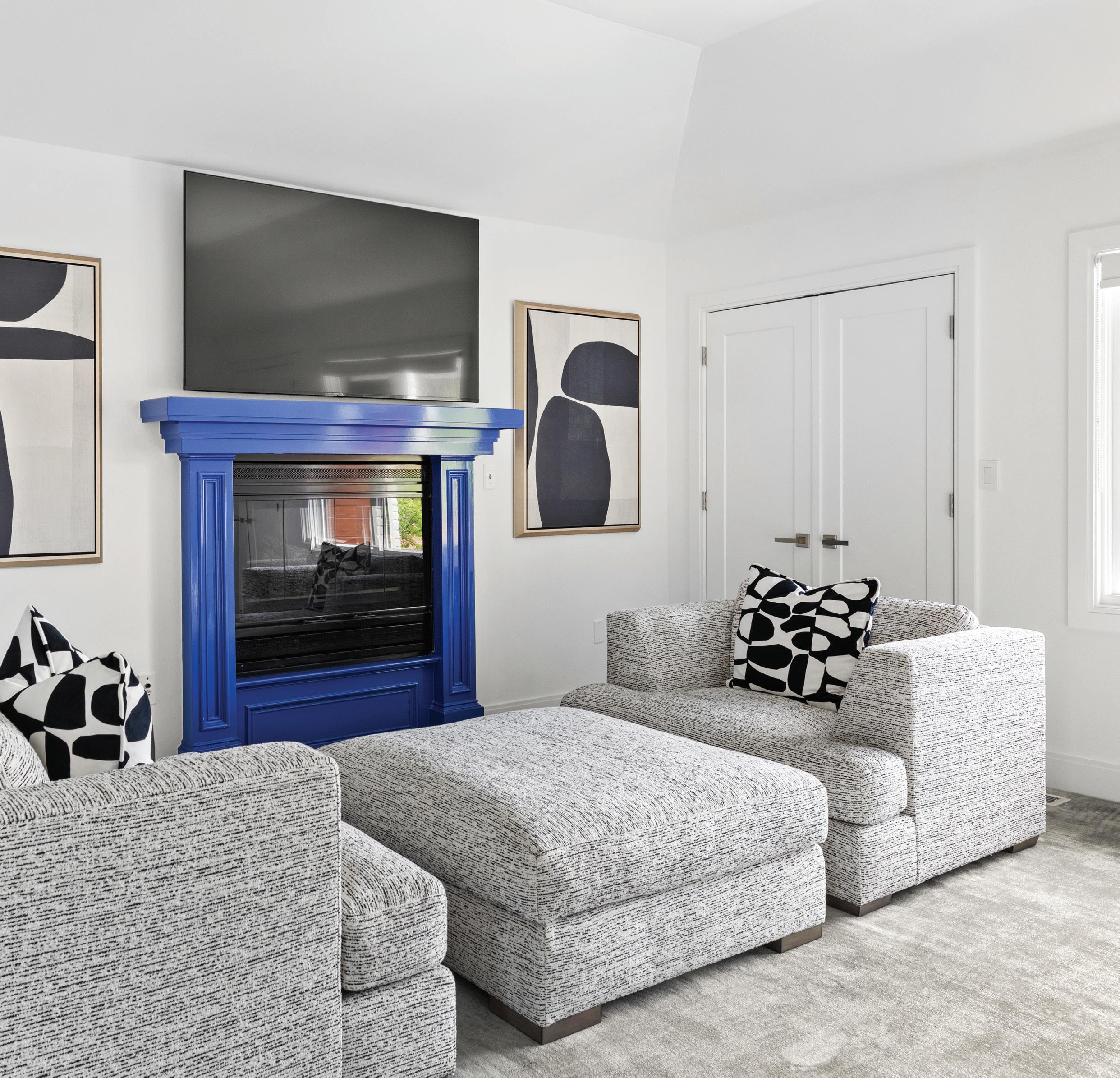 Drapery – Decoroom and Tennant & Associates, Michigan Design Center, Troy; Fabric, Silver Fox, Suitor, Holly Hunt Fireplace (Mantel Stone) – Ocean Black Brushed, Ciot, Troy