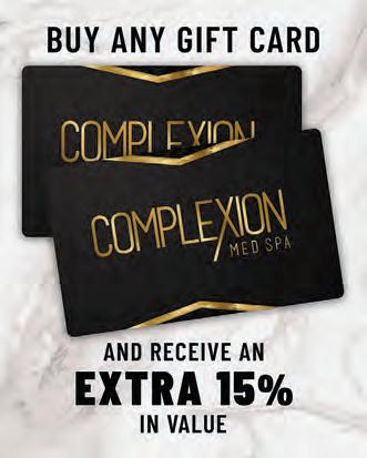 7423 ORCHARD LAKE ROAD, WEST BLOOMFIELD, MI 48322 (248) 737-6912 • COMPLEXIONSPA.COM “People will stare. Make it worth their while.” - HARRY WINSTON AN UNPARALLELED EXPERIENCE... BY A TEAM YOU CAN COUNT ON BOTOX • DERMAL FILLERS • FACIALS • PEELS • IPL RESURFX • MICRO-NEEDLING • PRP HAIR RESTORATION LASER HAIR REMOVAL • WAXING • BODY SCULPTING • IV DRIP THERAPY • VITAMIN SHOTS • LIP BLUSHING SUNLESS AIRBRUSHING • PROFESSIONAL TEETH WHITENING • AND MORE