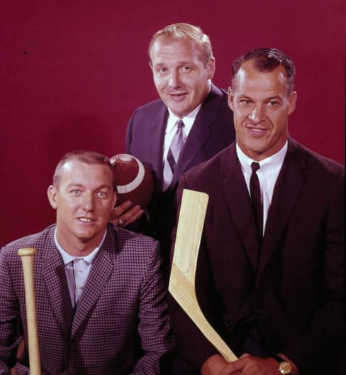 Pictured here are the Tigers’ 28-year-old perennial All-Star right fielder Al Kaline, 35-year-old Red Wings superstar Gordie Howe, and 31-year-old Lions captain and middle linebacker Joe Schmidt, who defined the position. Years later, the trio earned nicknames that would be forever associated with them: Kaline was “Mr. Tiger” and Howe “Mr. Hockey,” while Schmidt was dubbed “Mr. Detroit Lion” by a media panel.