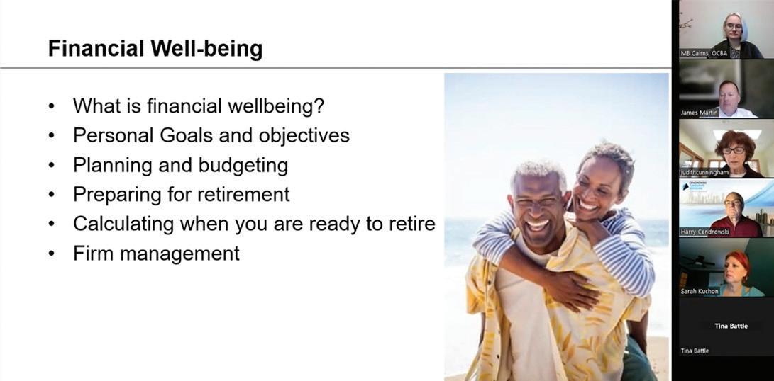I have been very concerned that, due to the pandemic, our new lawyers have not had the opportunity to learn the ropes of the legal profession by getting to sit in a courtroom, watch experienced attorneys, and learn the ins and outs of courtroom decorum. erefore, it was very important to me that the OCBA develop a training to properly welcome new lawyers to the practice of law and assist them with getting acclimated to the profession. e amount of enthusiasm displayed by the judges and attorneys who volunteered their time to help bring the OCBA New Lawyer Boot Camp to life was overwhelming! We have developed a very impressive and comprehensive program that I know will benefit new lawyers for years to come. I cannot thank enough each and every judge and lawyer who assisted us in creating this wonderful new program for our new lawyers.