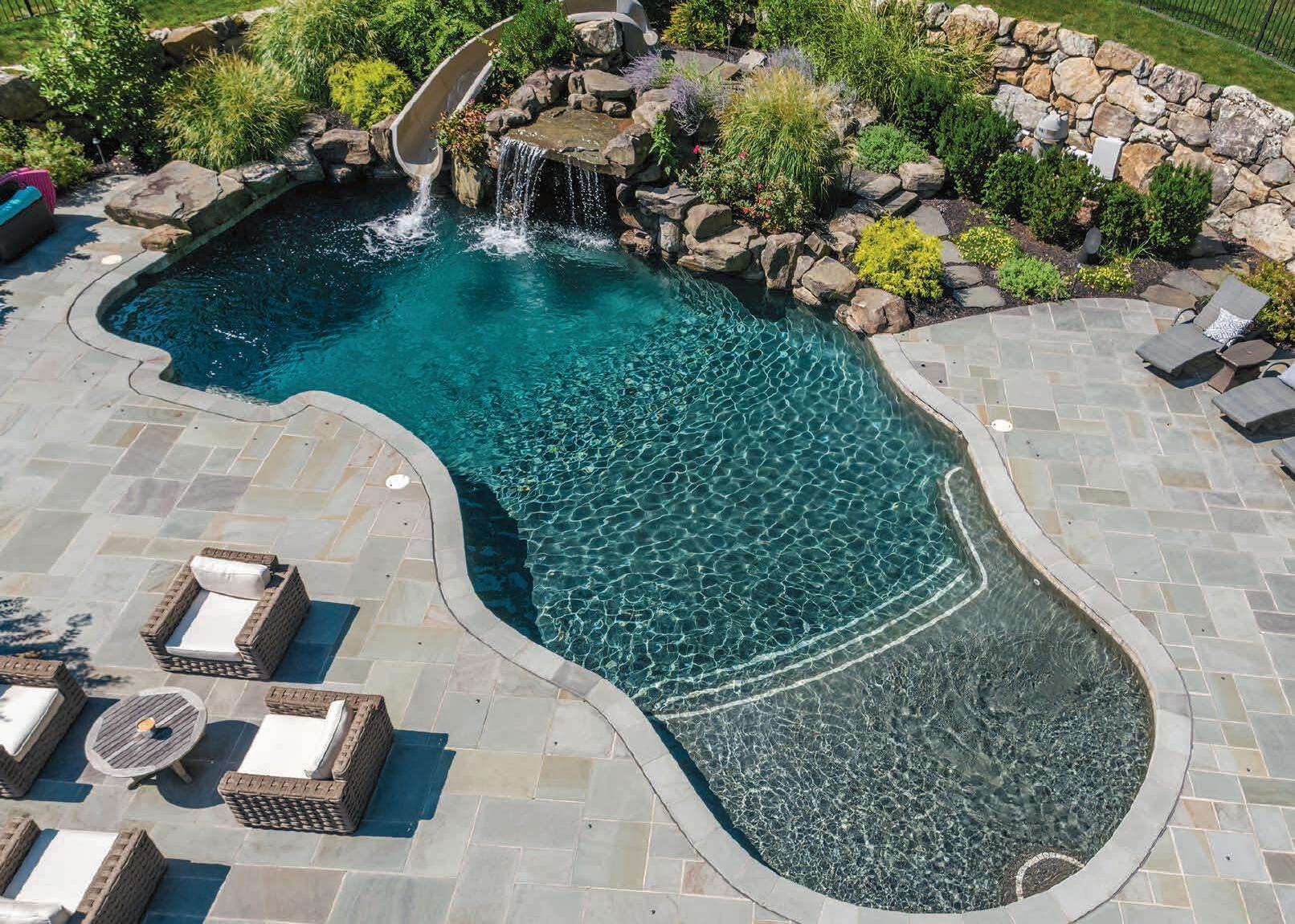 Hampton-style pools have long been a customer favorite, but equally popular are the freeform designs, which can be customized to fit into any backyard environment.