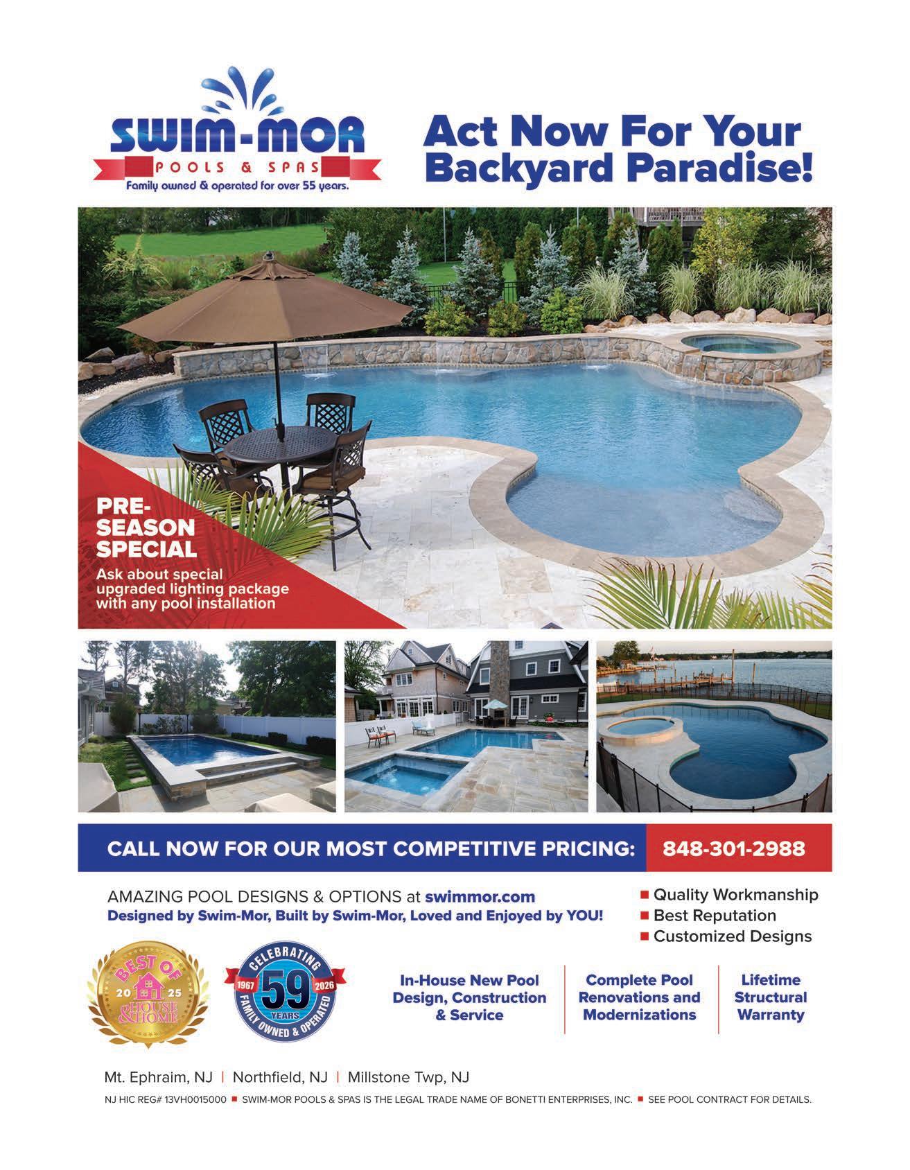 Fortunately, the family-owned South Jersey business is more than up to the challenge of bringing a customer’s backyard pool vision to life. In its 59 years of business, Swim-Mor Pools & Spas has helped to create thousands of backyard paradises throughout the region.