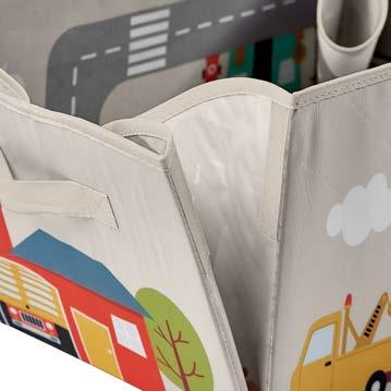 Thickness: 1mm Storage (PE27) • Material: polyester • Foldable • Indoor & outdoor use Play and store (PE56) • Material: polyester • Structure: cardboard • Easy to storage accessories • 2 in 1: play and store