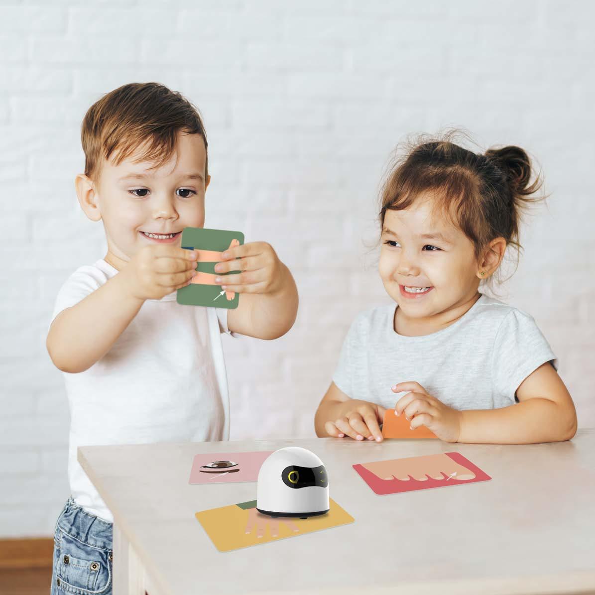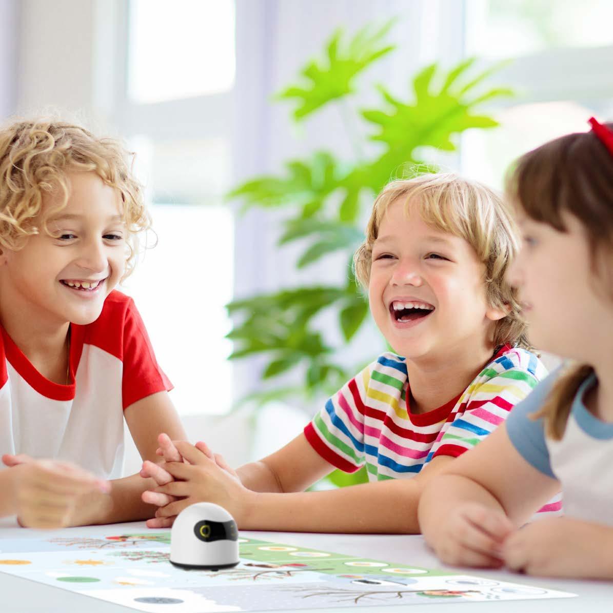 Il parle 4 langues, raconte une histoire, joue de la musique, se déplace sur un plateau de jeux, suit les instructions et est un support autocorrectif pour les enfants.