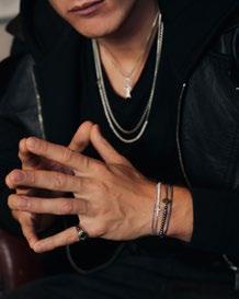 so ga pripravili oblikovno in razvojno v desnihemisferi na željo naročnika. Prisluhniti ideji naročnika, presenetiti z idejo kljub večkratnim poskusom se zdi težavno, a le tako se lahko pride do končnega izdelka, ki je vsaj v določenem vidiku smer per fekcije, kot si jo je posameznik zamislil. Nenehno z njim lahko spremljate svoje ure tudi preko aplikacije in si izberete popol noma navito v točno določenem trenutku dneva in za primerno priložnost. Podobno, kot je to pri dodatku modnih zapestnic ali moškega nakita, ki ga je razvil pred 30 leti Robert Tateossian, ki sem ga spoznal v začetku leta v njegovi čudoviti trgovini v Lon donu. Robert je po večletnem delovanju kot investicijski bankir svojo strast začutil v kakovostno izdelanih manšetnih gumbih in zapestnicah na popotovanju po Tajskem, danes pa ga poznamo kot enega največjih mojstrov moškega nakita s trgovinami v več kot 100 državah po vsem svetu. Časa pa nimamo na pretek na tem planetu in v poplavi informacij in fejk novic je težko sle diti strogo začrtani poti posameznika, ko tako zelo prevladuje čredni nagon, zato je treba toliko bolj ceniti tako lepe individu alne zgodbe, ki same po sebi dokazujejo prav to, nad čimer sem pogosto začuden. V času, ko je vse mogoče in si lahko razviješ še tako zahtevno idejo, se večina oseb generalizira z enakimi ustnicami in enakimi oblačili hitre mode, namesto da bi pri svojih nakupnih navadah vsaj malo individualizirale svoj nak upni model, čeprav gre za nove ustnice, nove trepalnice, nove nohte ali konec koncev nov trebuh ali rit. Ob vsem tem se tako vprašam, kako res živimo danes? Res še le iz minute v minute, le še za hip za tistih nekaj klikov, lajkov ali smo še sposobni najti kakovost tako v osebnostih kot tudi izdelkih, ki jih kupuje mo in konzumiramo. Morda nas sodobni čas vsaj malo prisili k tovrstnemu razmišljanju in vrnitvi k pravim vrednotam, saj se zdi, da so vse preostale opojnosti povsem odnesle večino ljudi sodobnega sveta v povsem zgrešene smeri.