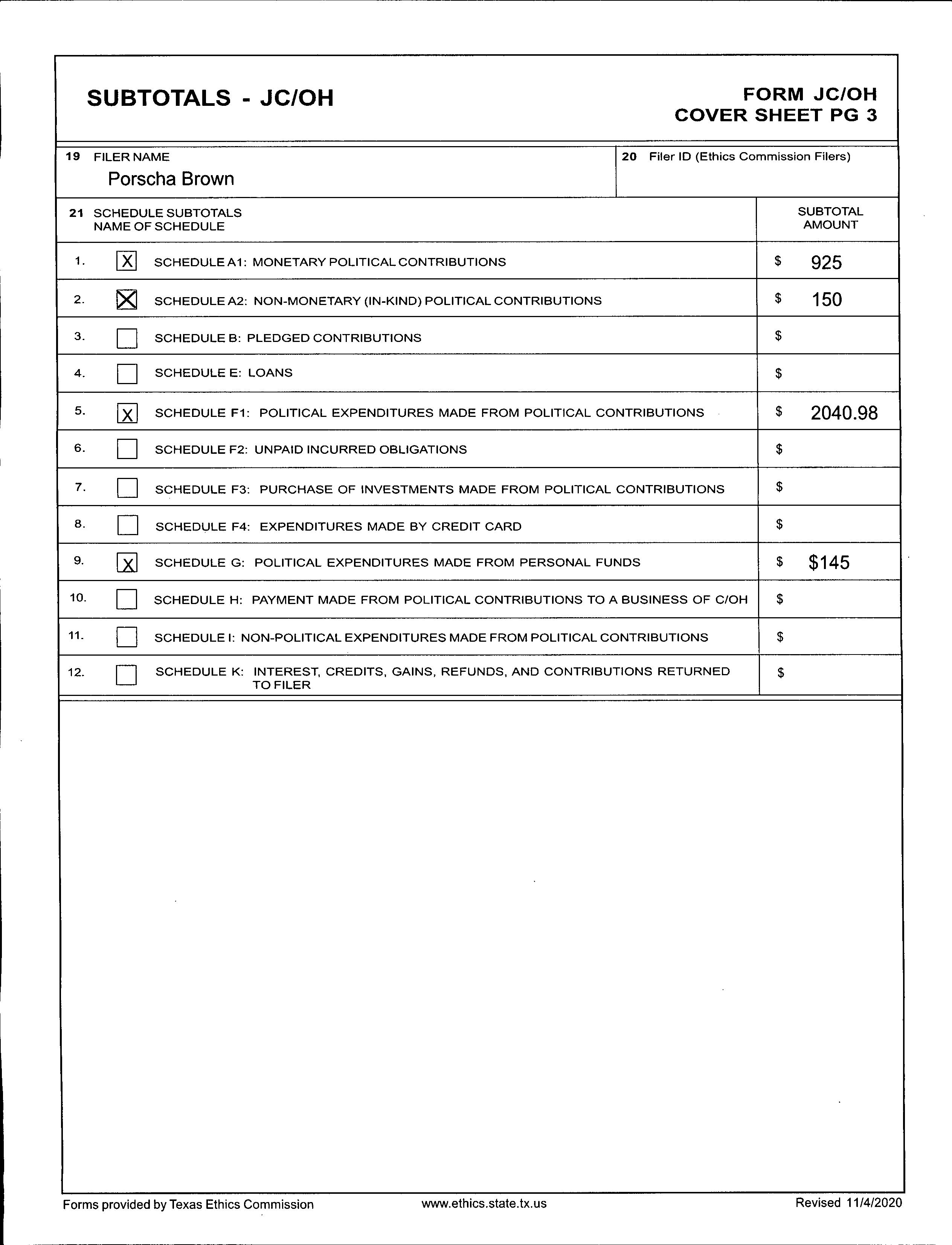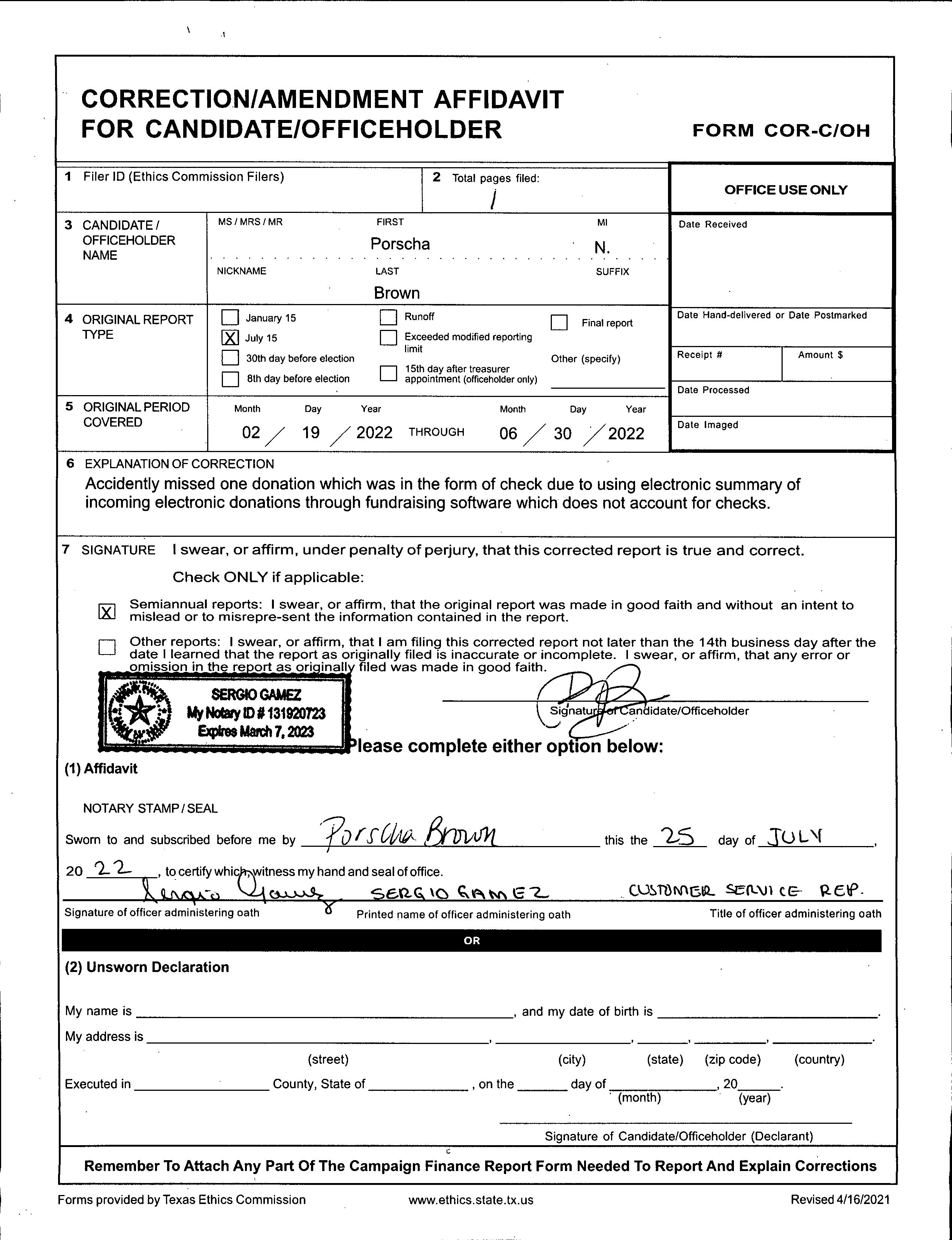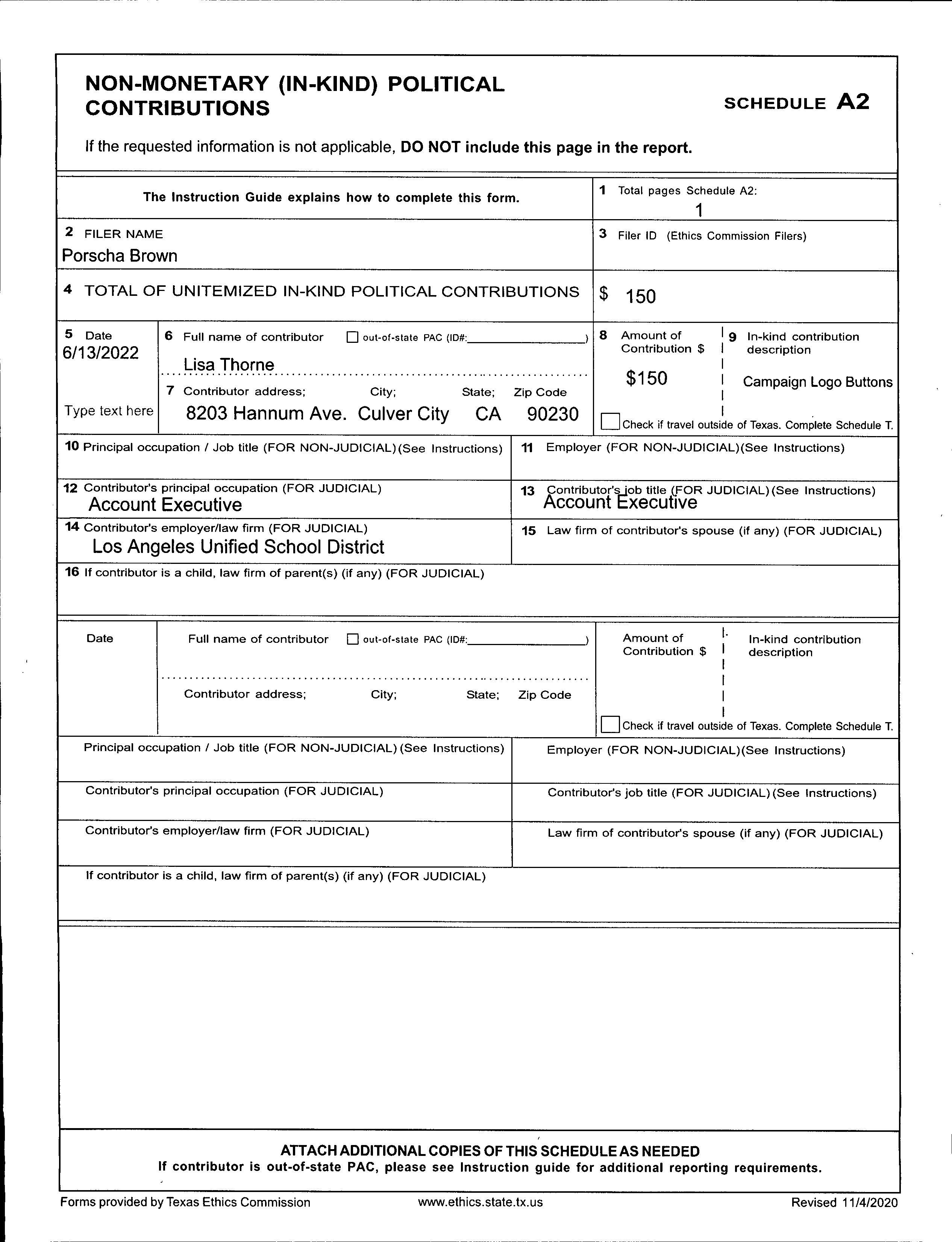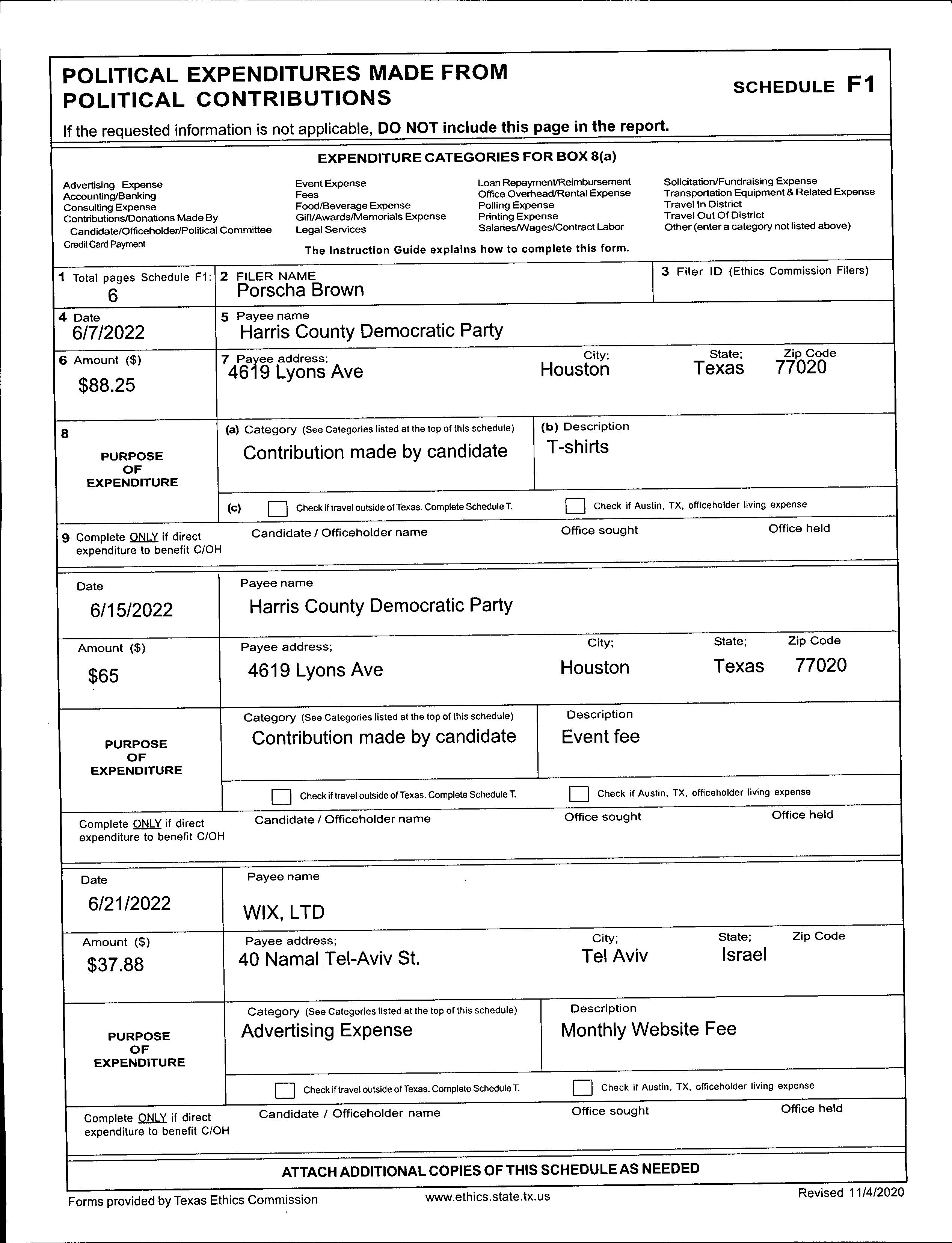 On July 25, 2022, Porscha Natasha Brown file this Campaign Finance Report