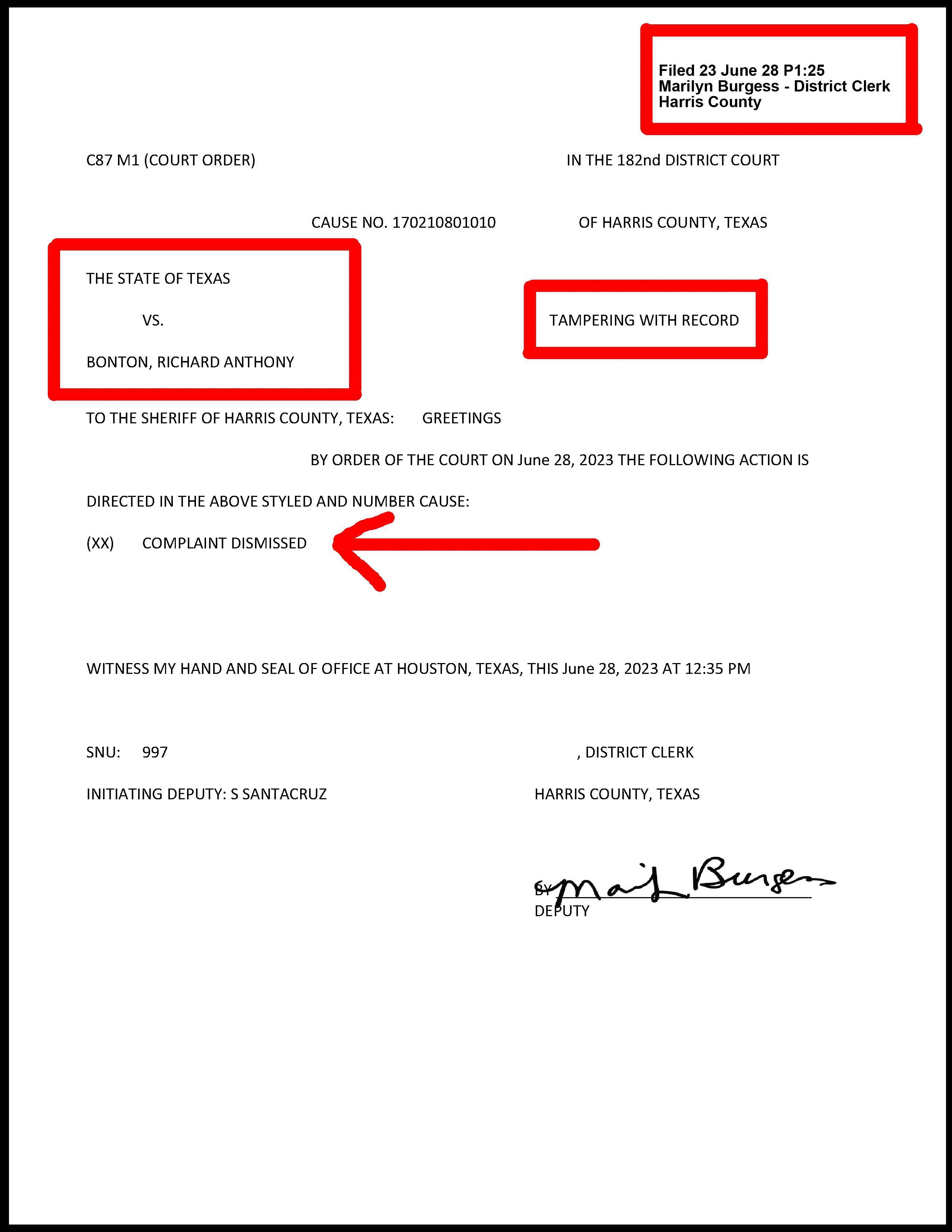 The State of Texas versus Richard Bonton case was dismissed on Wednesday, June 28, 2023, and Tamoria Jones, the chief of staff for State Representative Harold Dutton, Jr., died on Saturday, July 1, 2023, which was only three days after Harris County District Attorney Kim Ogg quietly settled the 'high-profile' Election Fraud case. If you remember, Tamoria Jones is the woman who was featured by attorney "Downtown" Oliver Brown in a secretly recorded video related to a "QUID PRO QUO" between Harris County District Attorney Kim Ogg, and State Representative Harold Dutton, Jr., intended to enact revenge upon his political rivals who had cost him money following the Tuesday, March 3, 2020, Democratic Party Primary race for State Representative for House District 142, in Harris County, Texas. Aubrey R. Taylor Communications is the publisher of the Houston Business Connections Newspaper. All Rights Reserved.