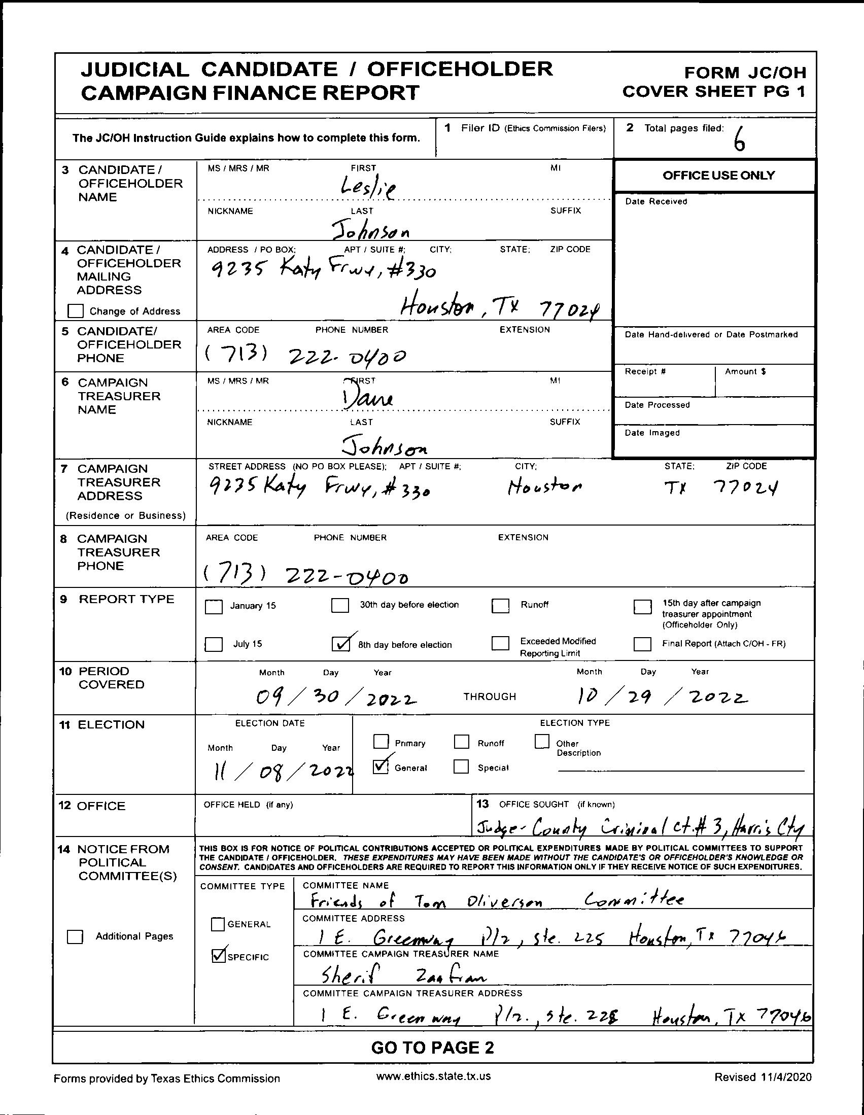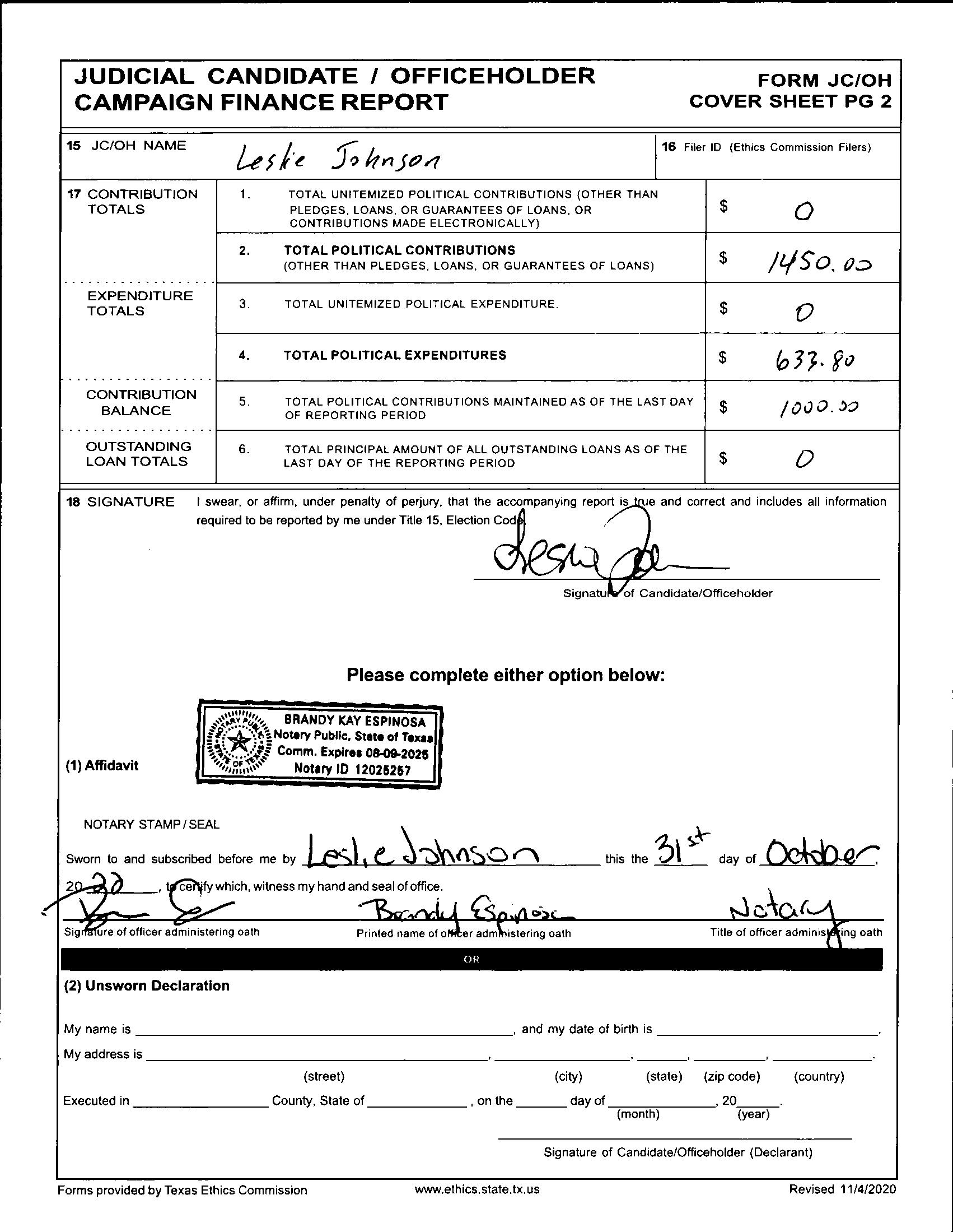 Leslie Johnson, October 31, 2022, Campaign Finance Report