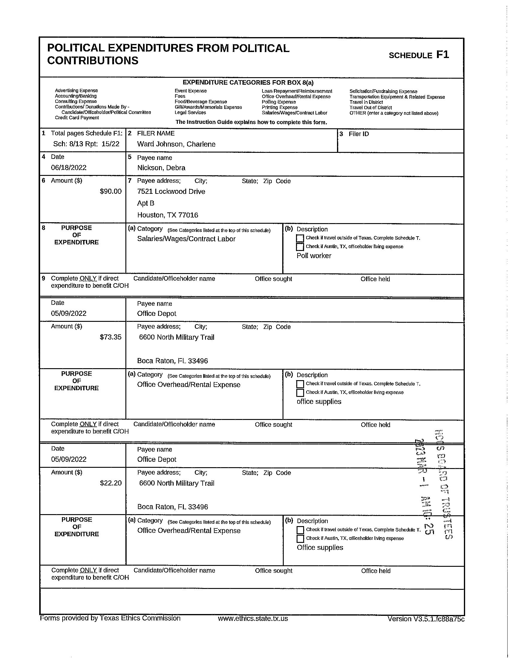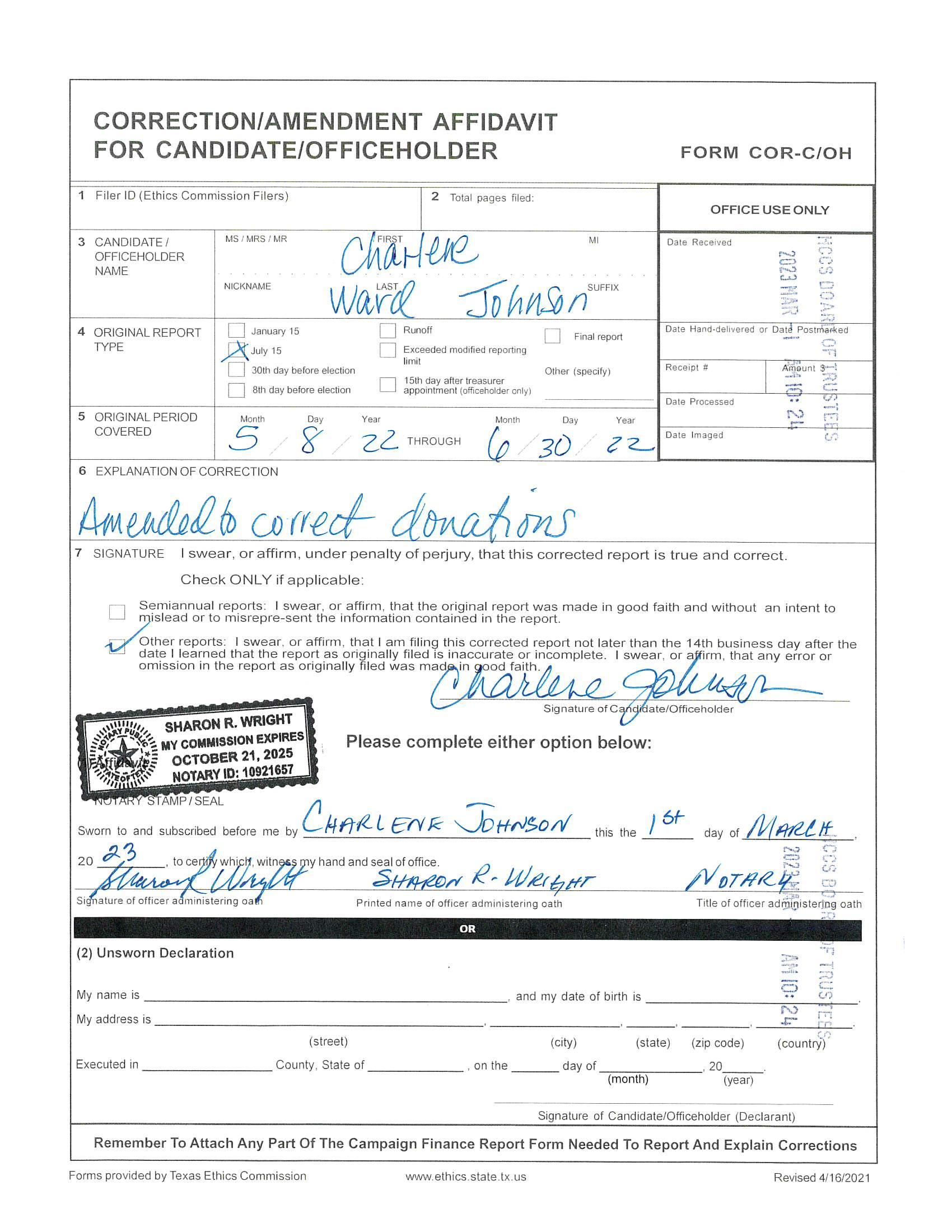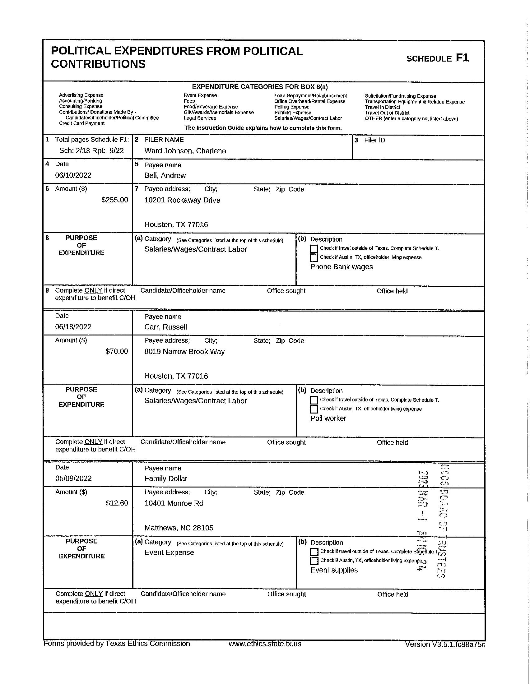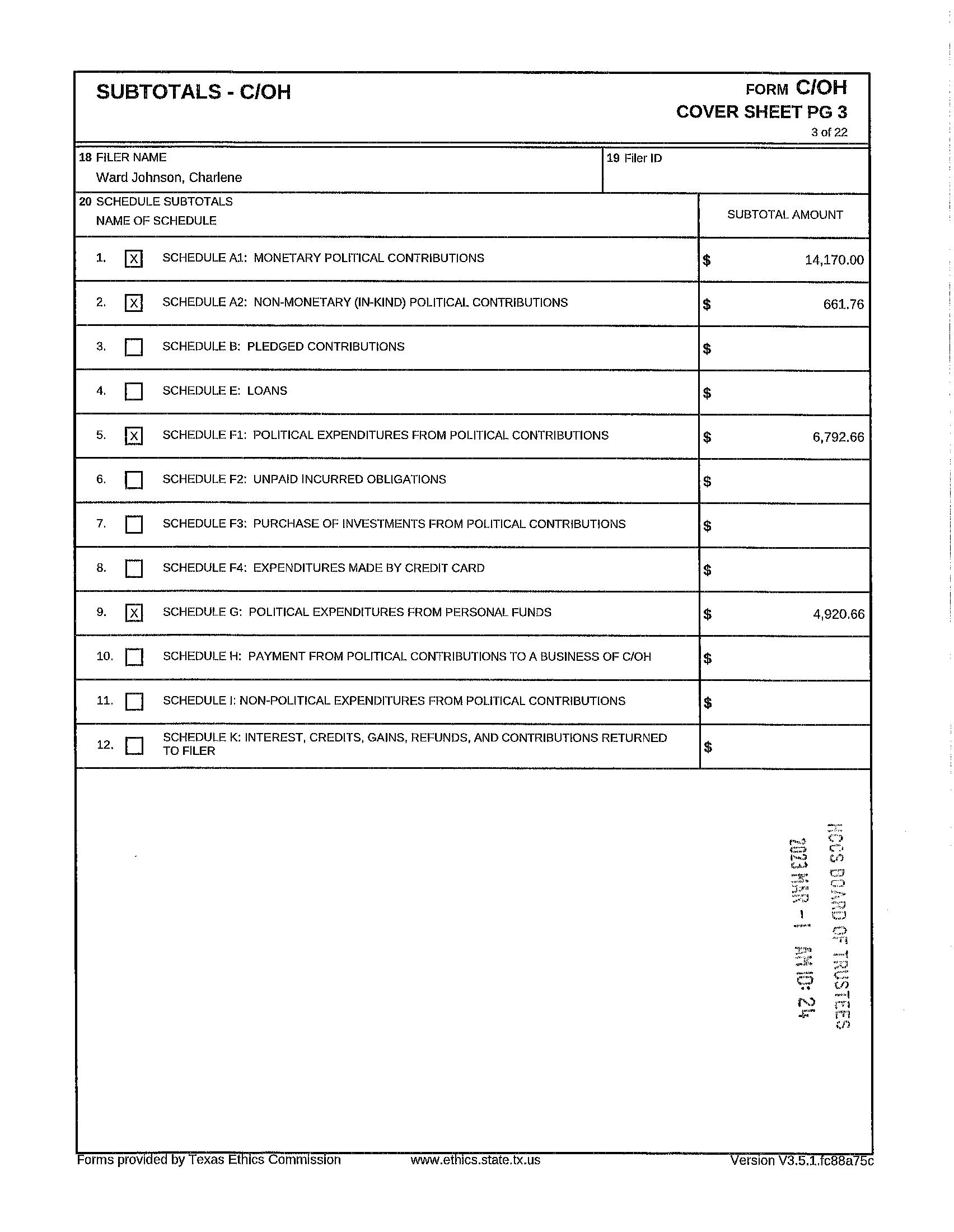 This campaign finance report was filed on Wednesday, March 1, 2023, by HCC Trustee Charlene Ward Johnson, to accurately reflect donations she had received from the Houston Business Education Coalition PAC, back during the 2022 reporting period. Aubrey R. Taylor Communications is the publisher of the Houston Business Connections Newspaper.