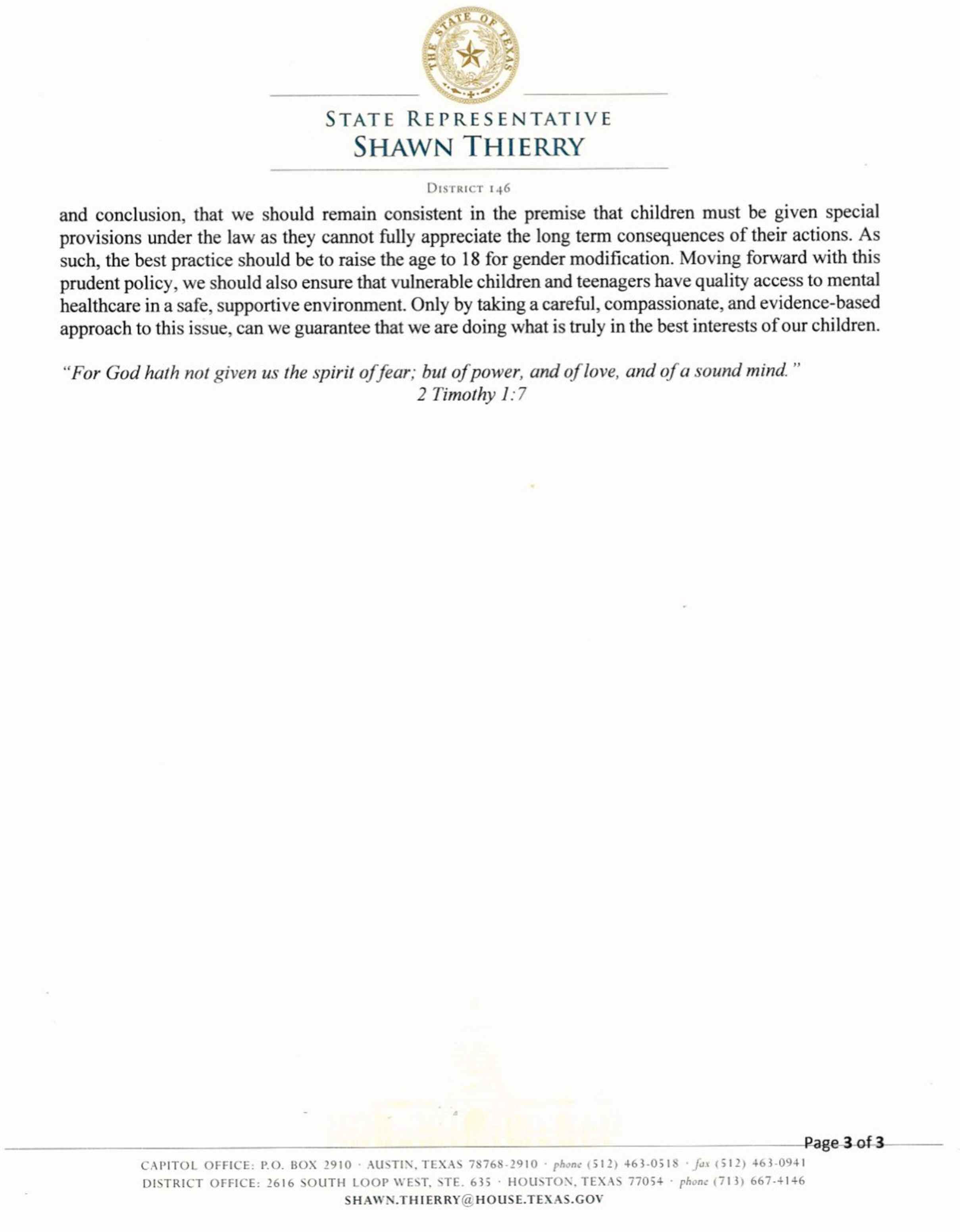 On Monday, May 15, 2023, State Representative Shawn Thierry, a Democrat, voted in favor of Senate Bill 14, in a bipartisan (87-56) vote on the House floor. She has since been censured by the Meyerland Area Democrats. Houston Business Connections Newspaper is published by Aubrey R Taylor Communications. All Rights Reserved.