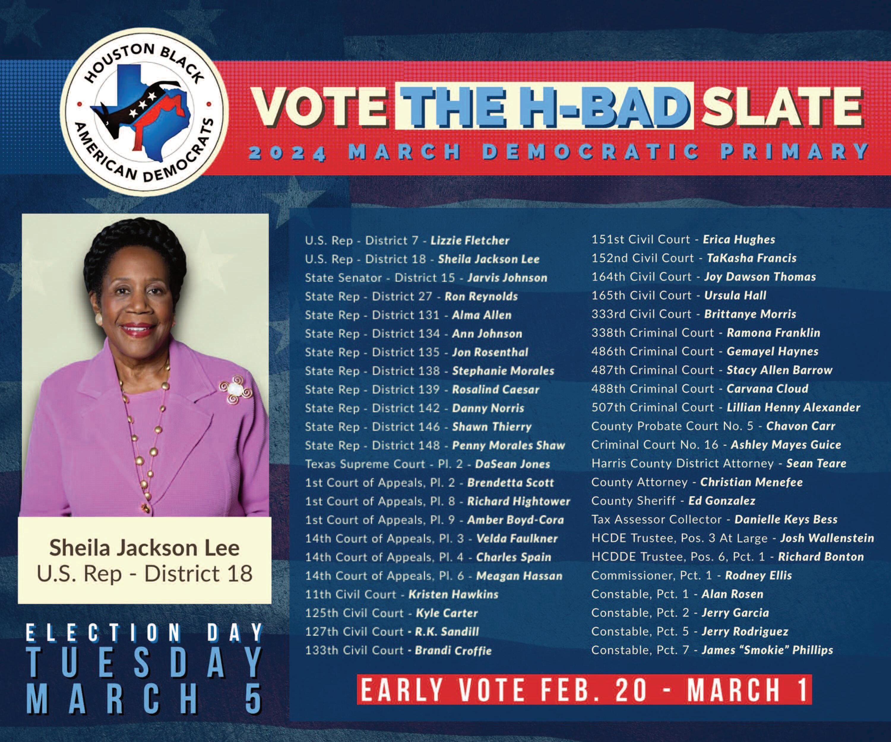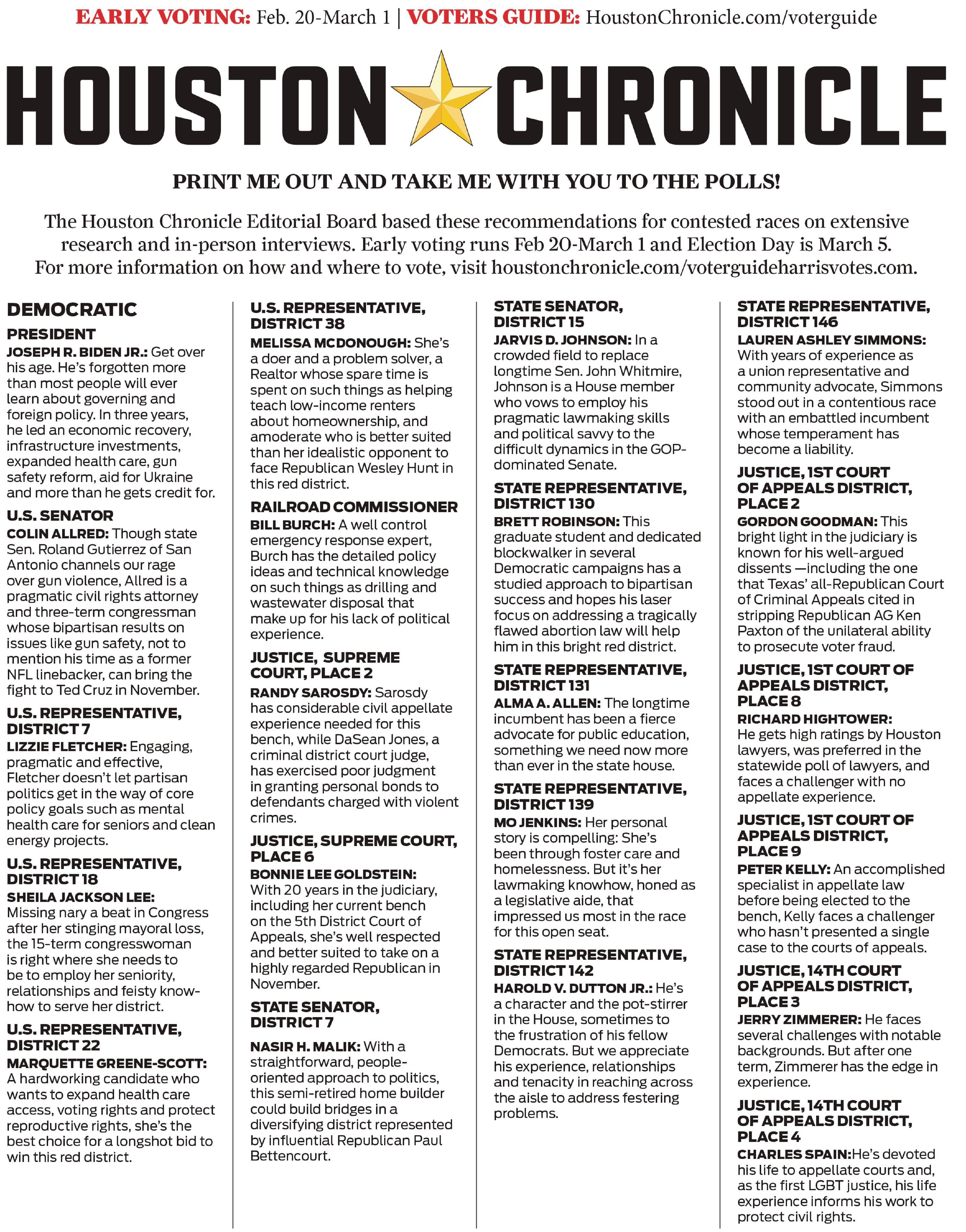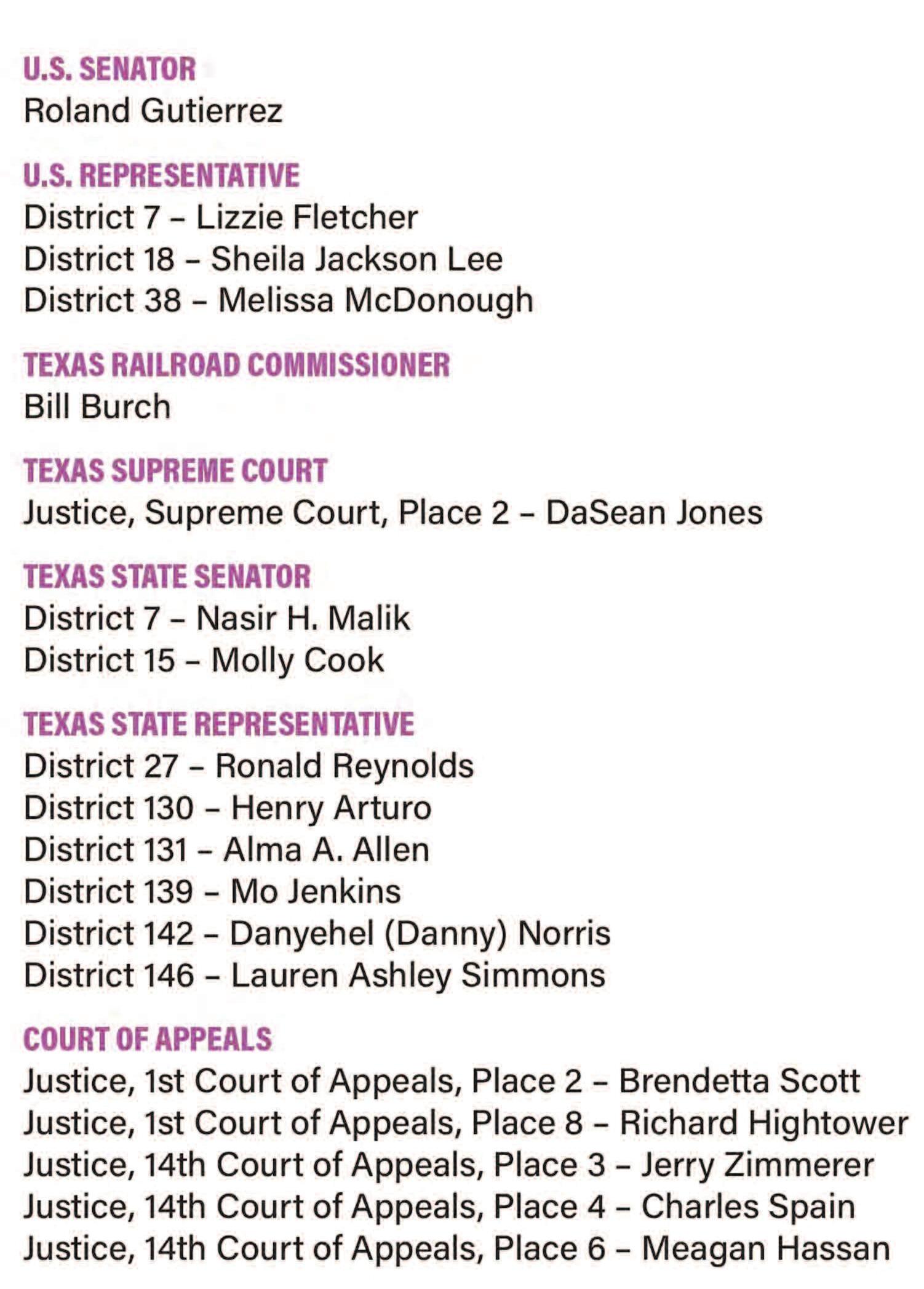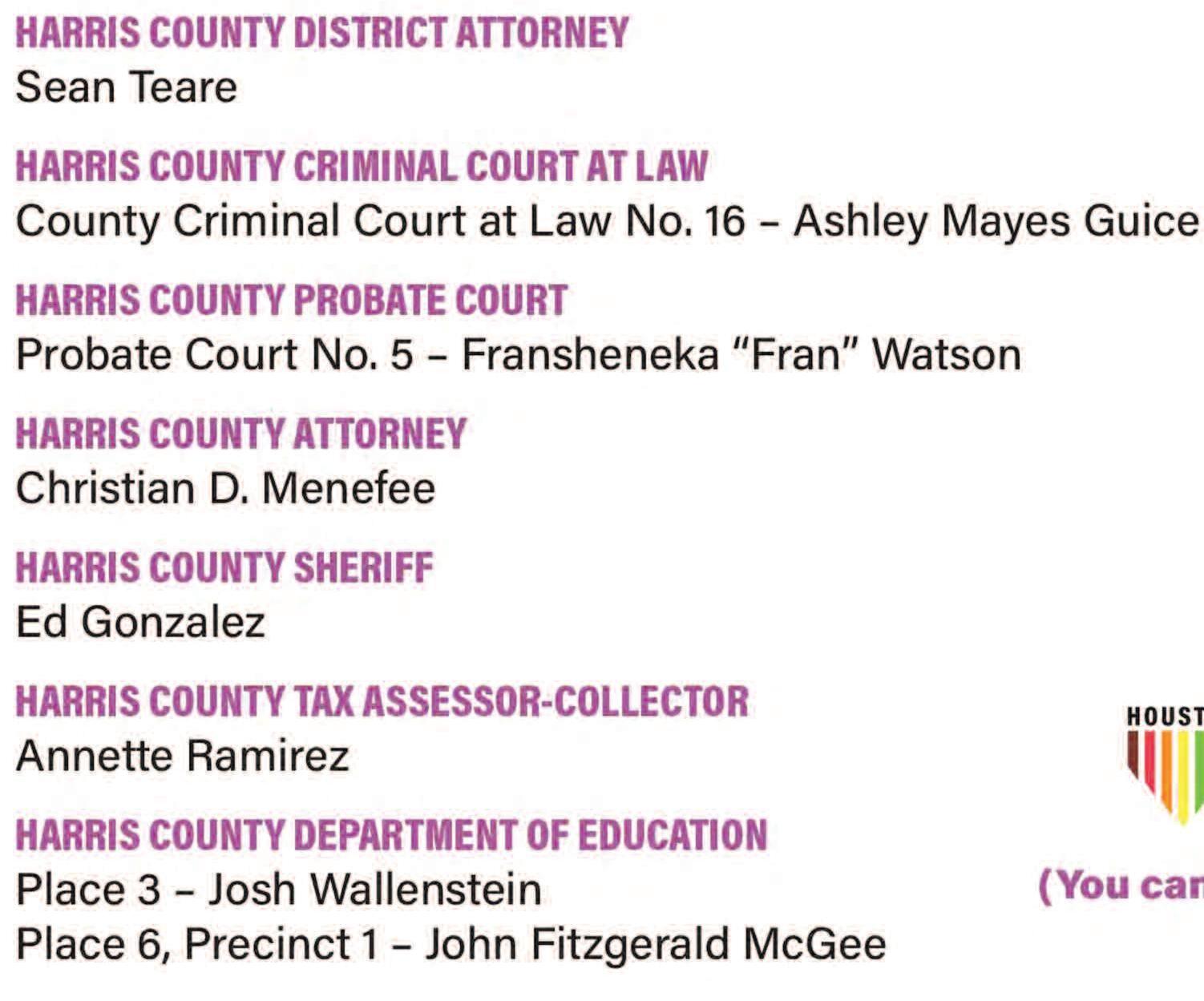 *PLEASE VOTE FOR THESE PEOPLE ON TUESDAY, MARCH 5, 2024, IN THE DEMOCRATIC PARTY PRIMARY IN HARRIS COUNTY, TEXAS