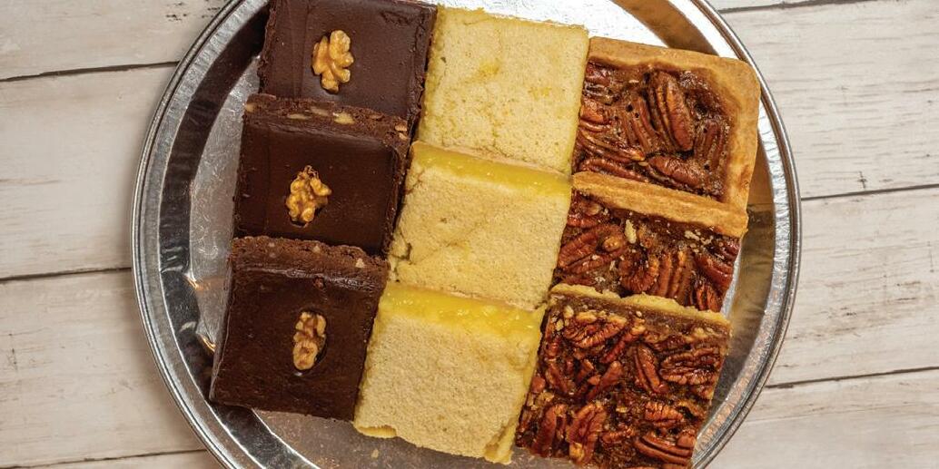 2. Bar Plater with Lemon, Pecan, and Brownie, 3 bars (1 of each), $15; 6 bars (2 of each) $30; Large 9 bars (3 of each), $45
