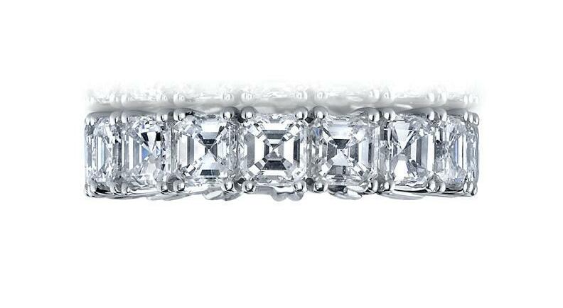 3. A platinum Asscher-cut diamond eternity band with buttercup setting, $23,695. at Tenenbaum Jewelers, tenenbaumjewelers.com.